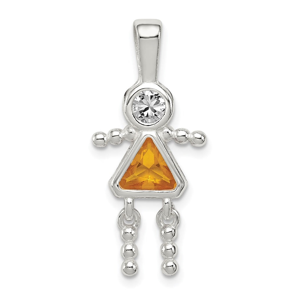 Sterling Silver Rhodium plated Cubic Zirconia & November Glass Girl Pendant