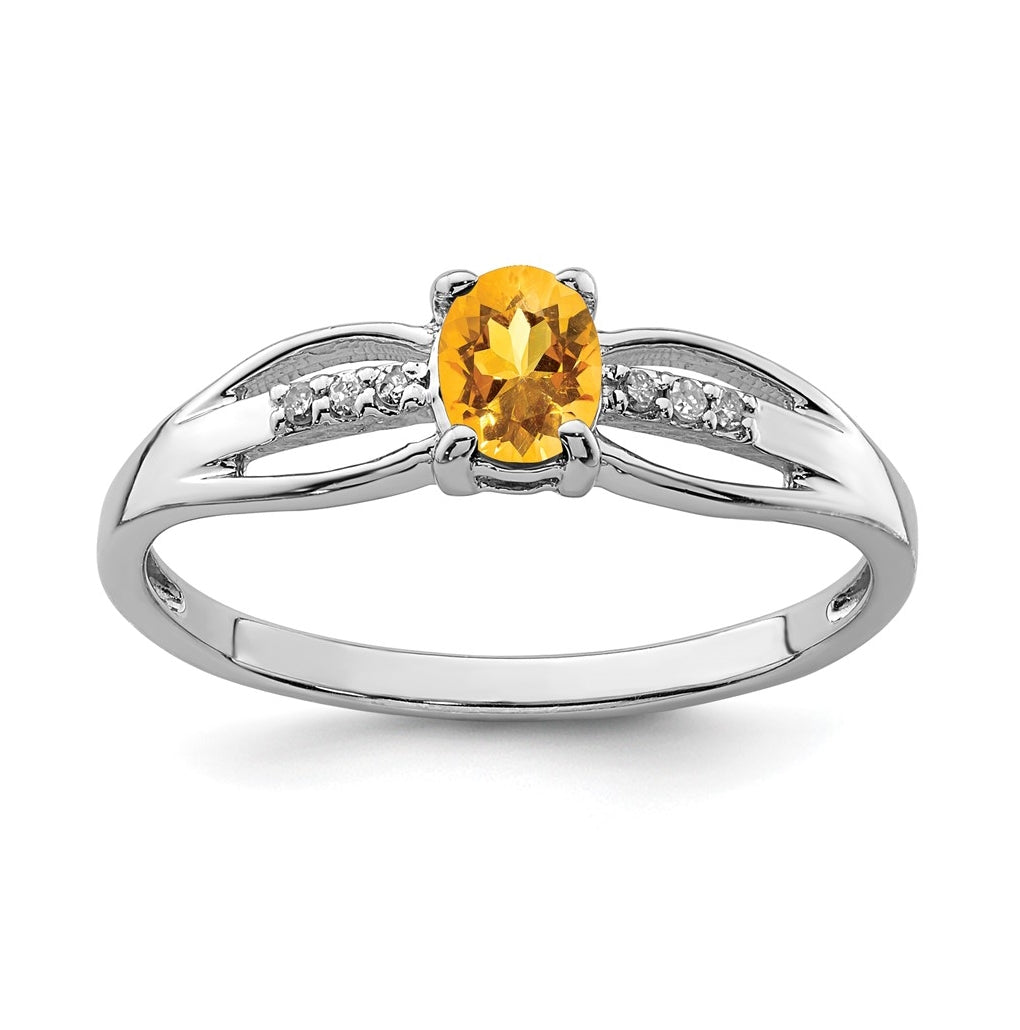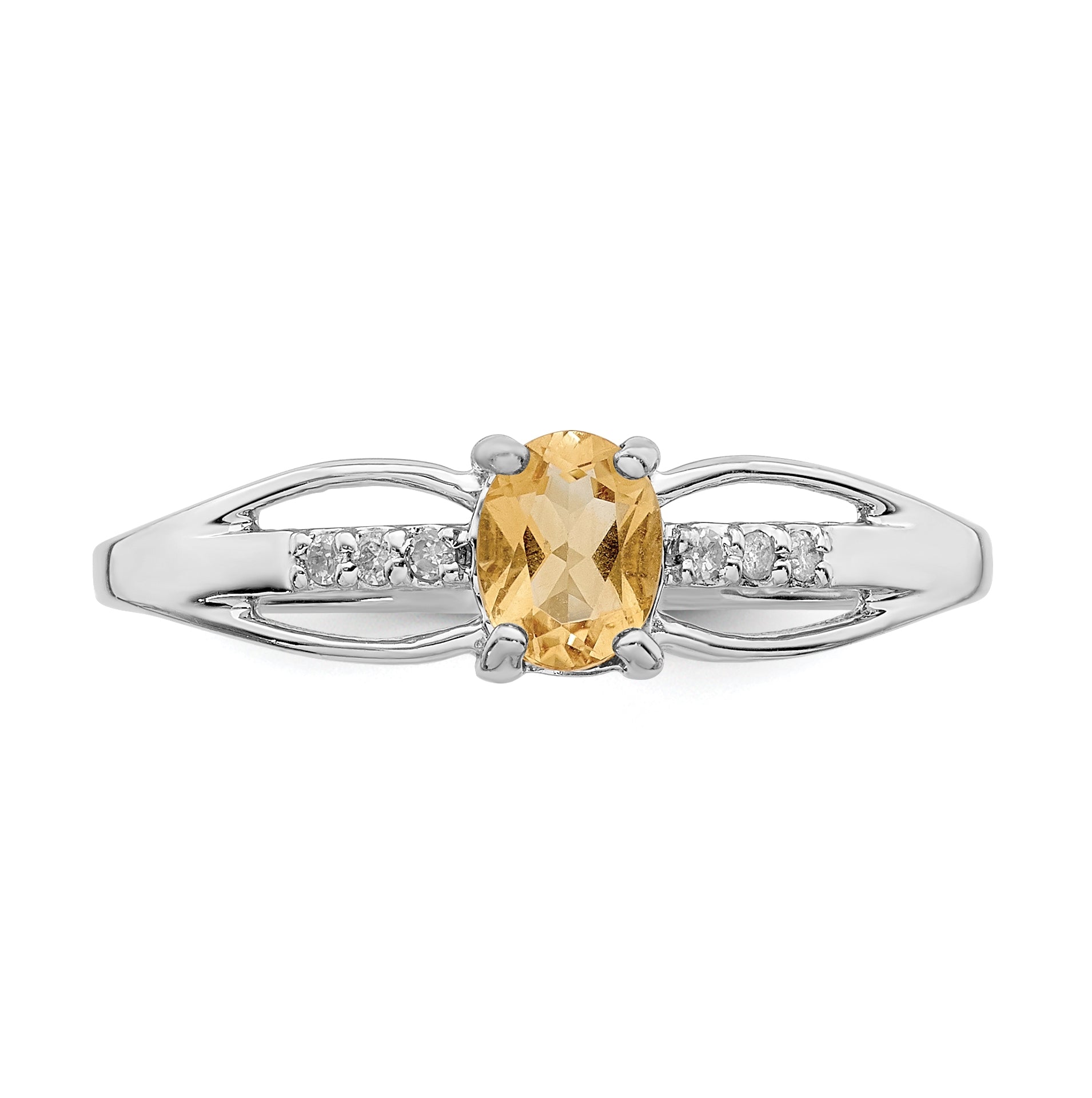 Sterling Silver Rhodium Plated Diamond Citrine Ring, Size 8