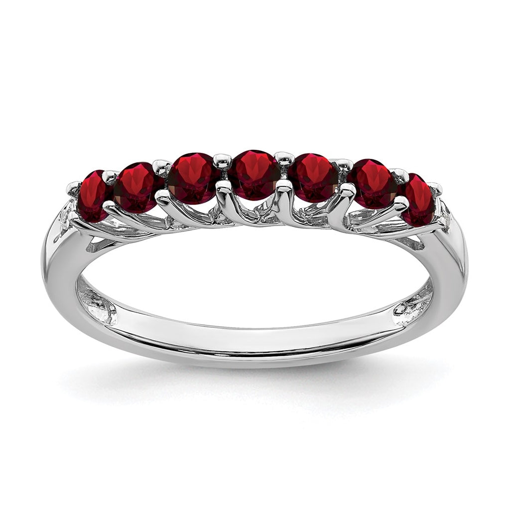 Sterling Silver Rhodium plated Garnet and Diamond Ring, Size 6