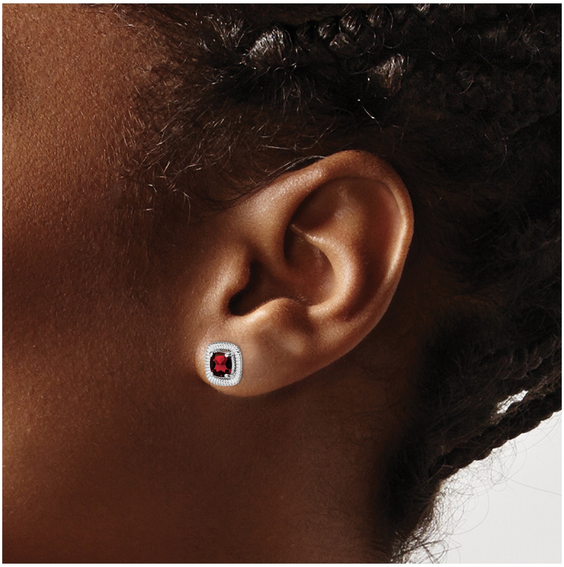 Sterling Silver Rhodium Plated Garnet Square Post Earrings