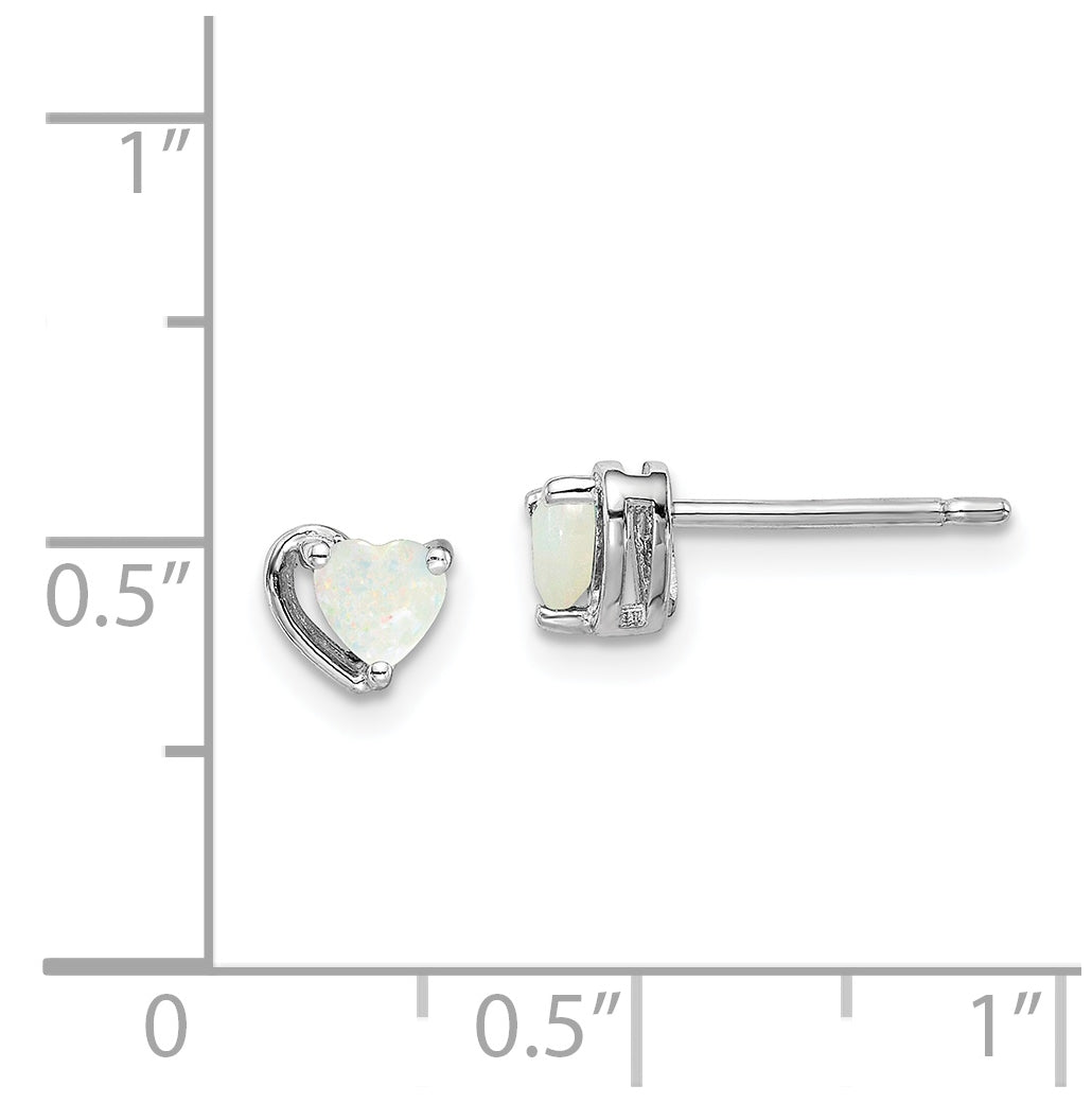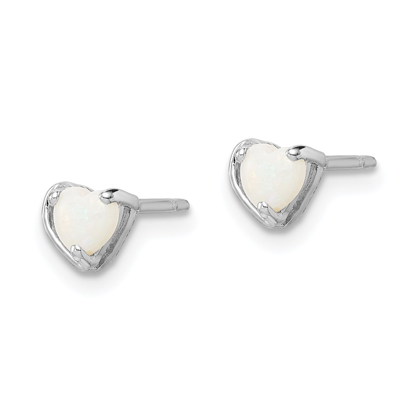 Sterling Silver Rhodium Plated Imitation Opal Heart Post Earrings