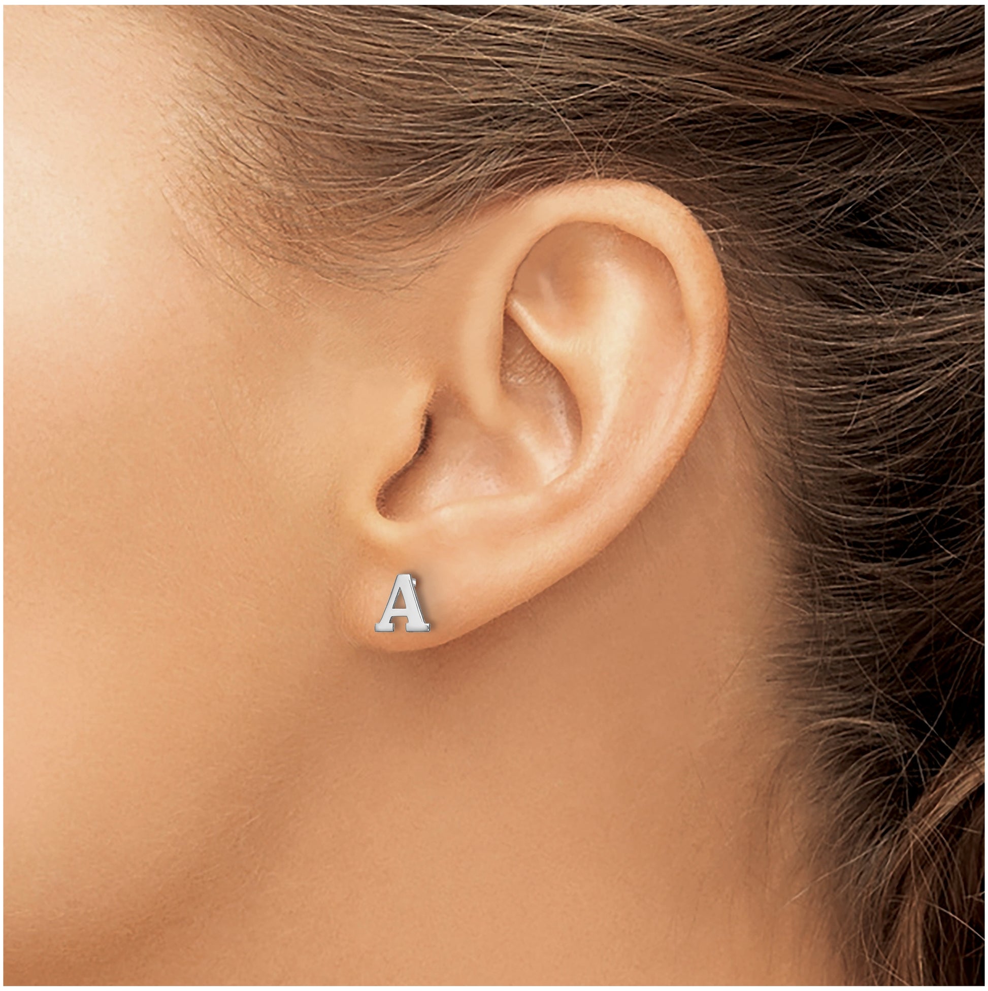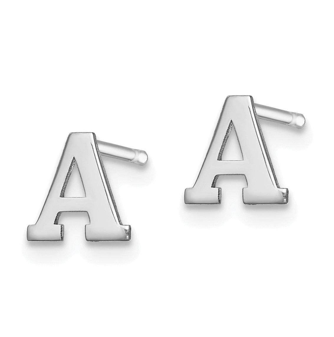 Sterling Silver Rhodium plated Letter A Initial Post Earrings