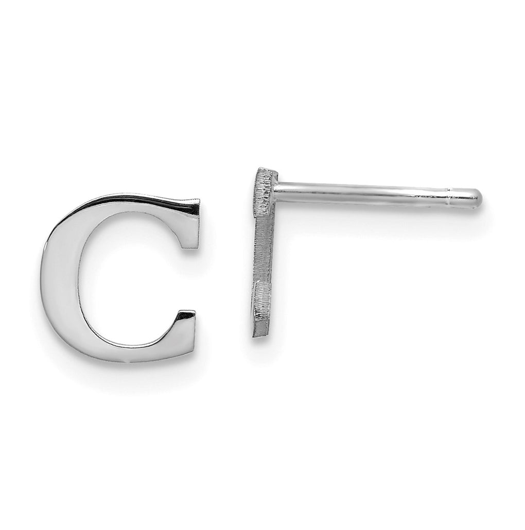 Sterling Silver Rhodium plated Letter C Initial Post Earrings