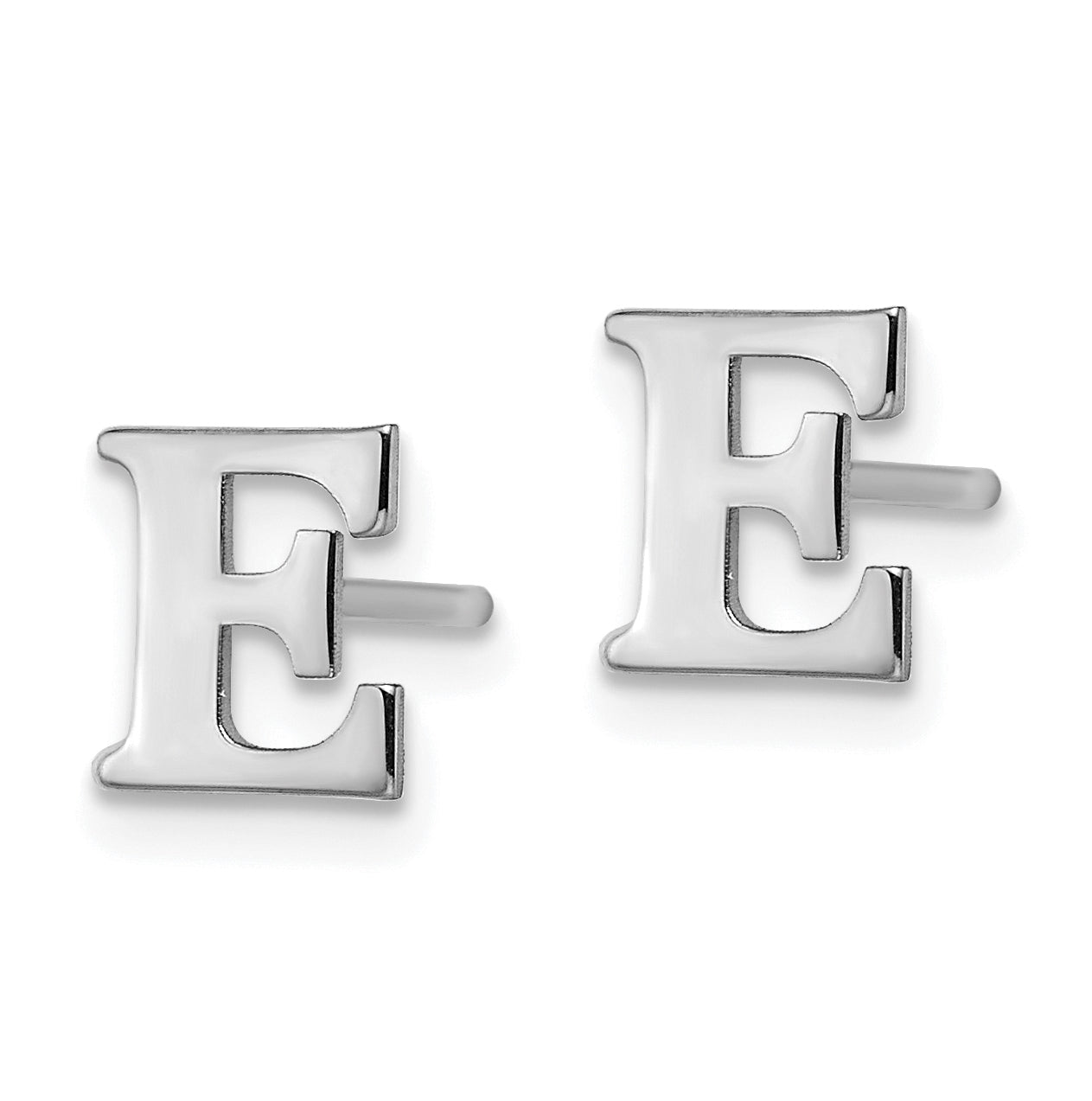 Sterling Silver Rhodium plated Letter E Initial Post Earrings