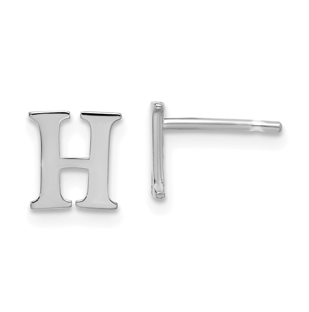 Sterling Silver Rhodium plated Letter H Initial Post Earrings