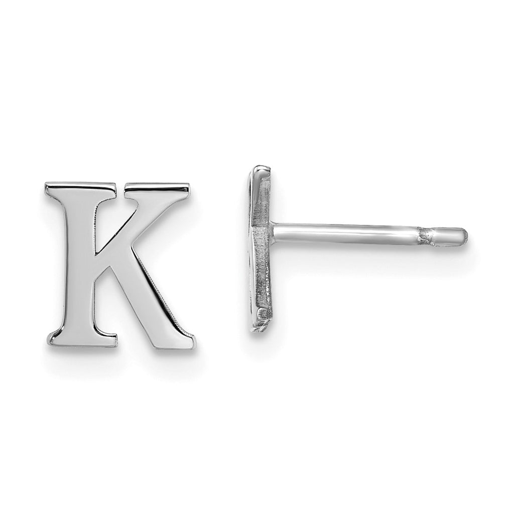 Sterling Silver Rhodium plated Letter K Initial Post Earrings