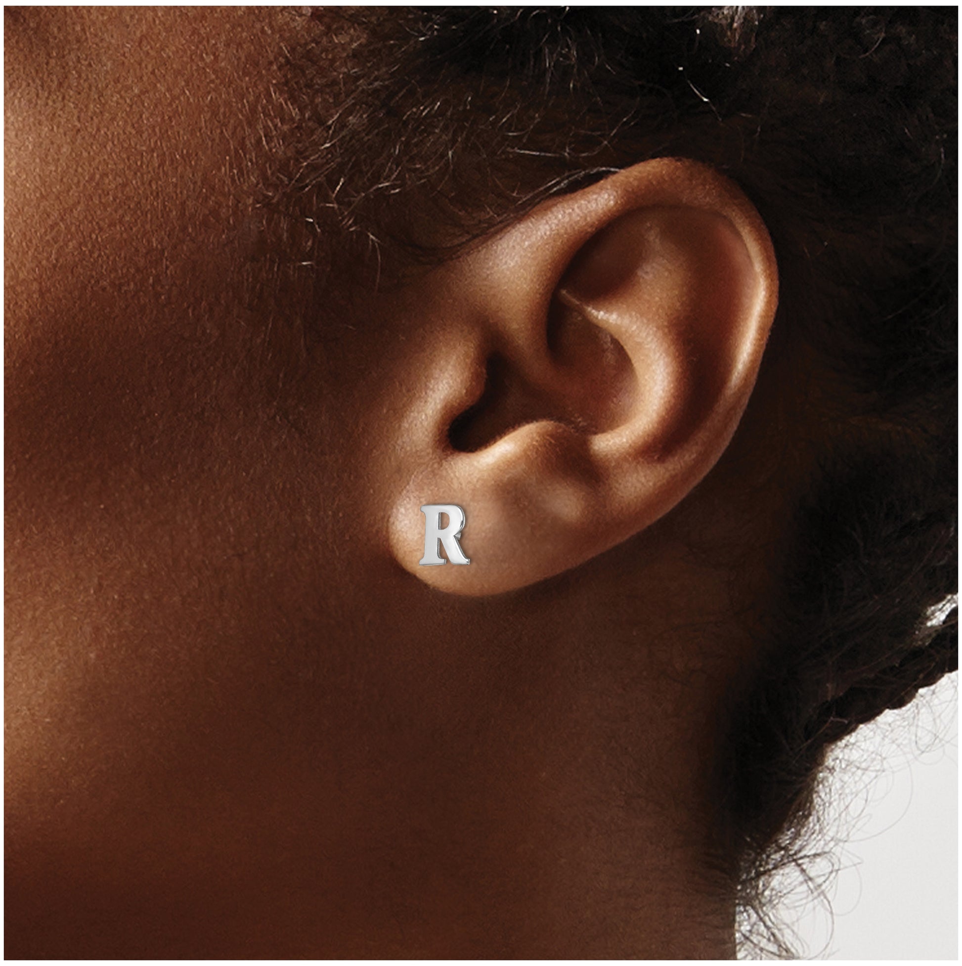 Sterling Silver Rhodium plated Letter R Initial Post Earrings