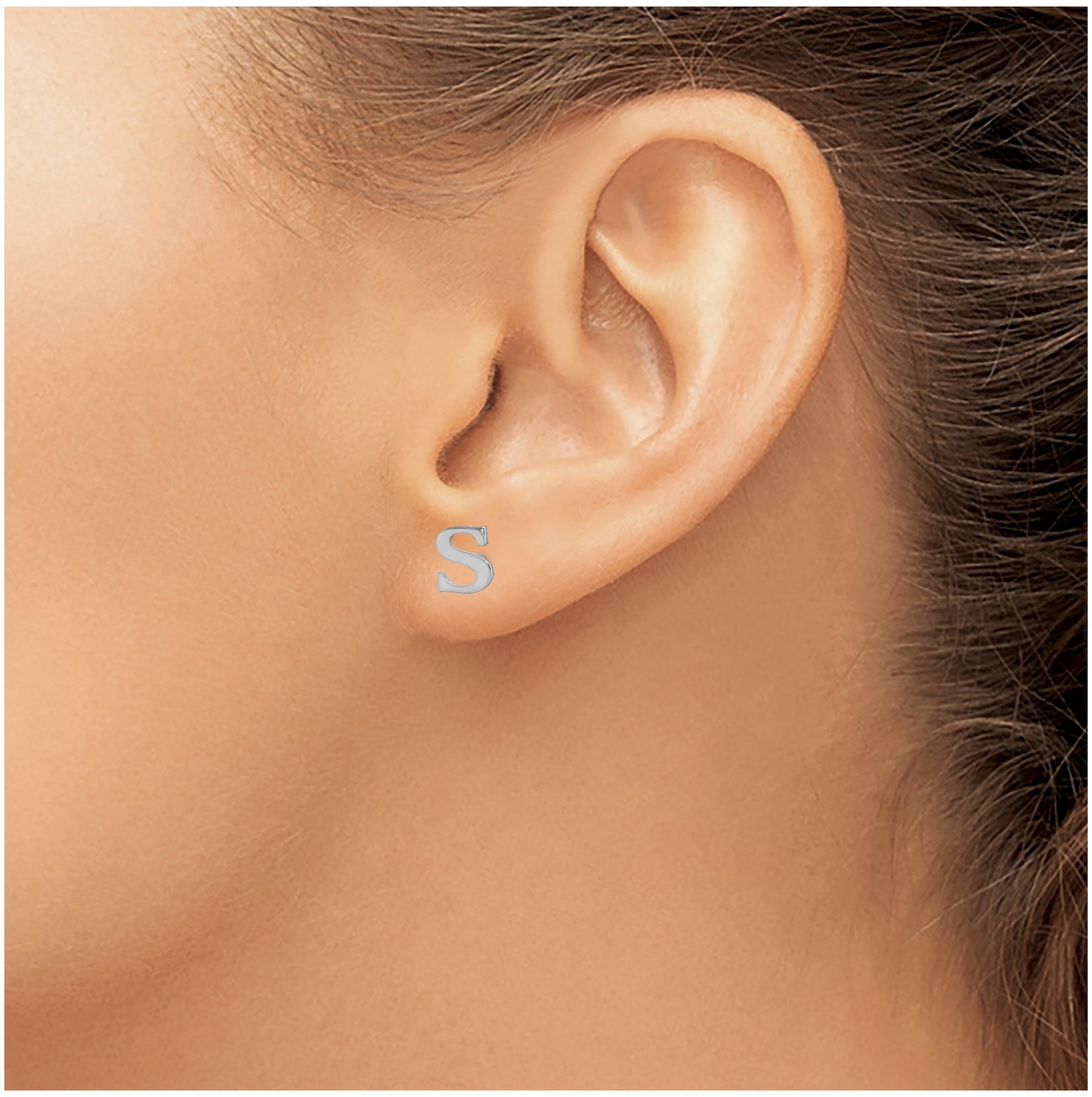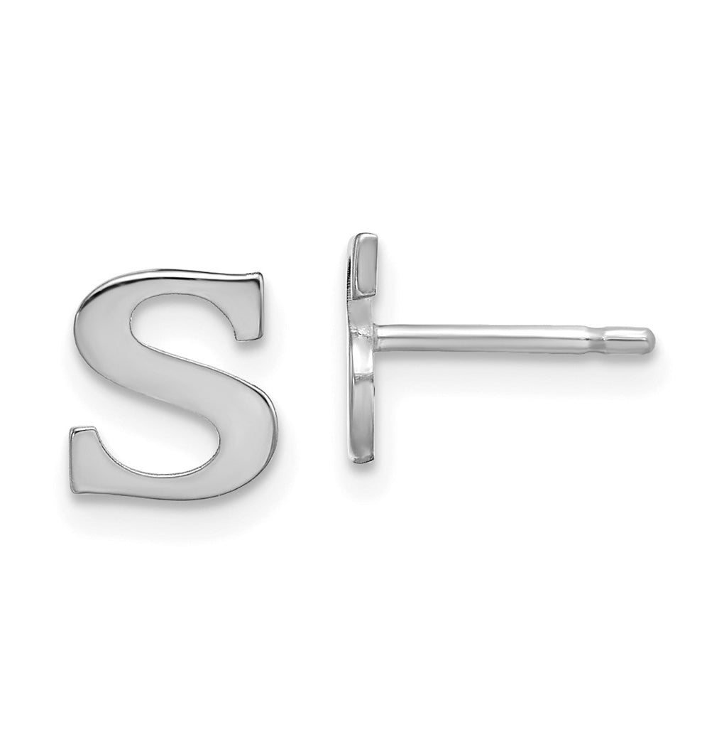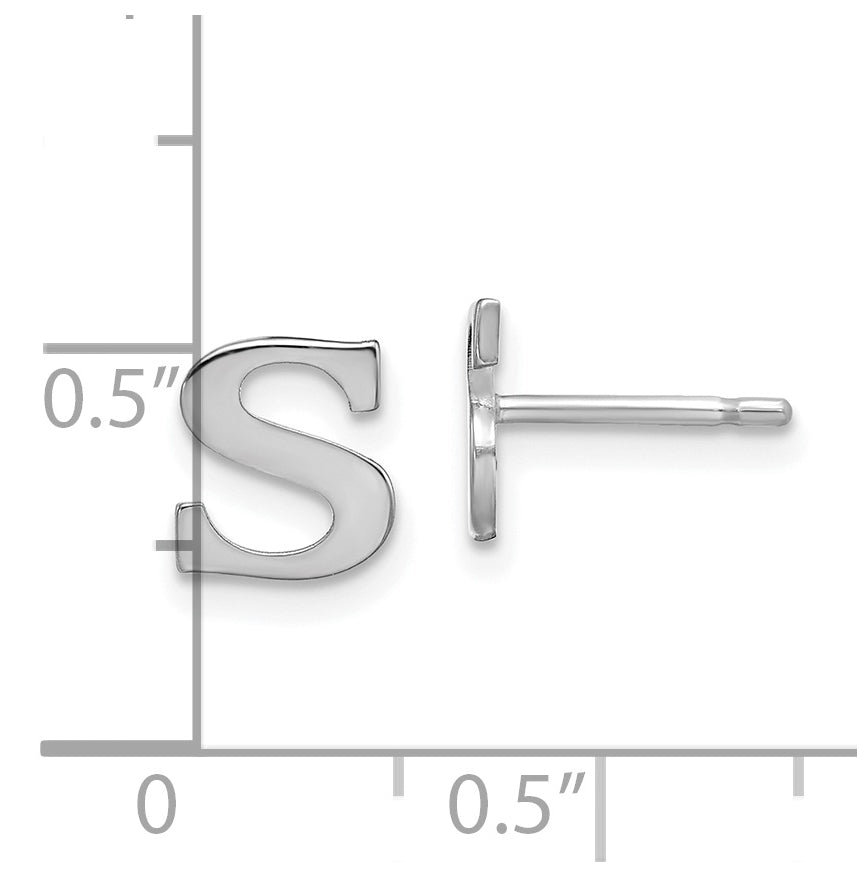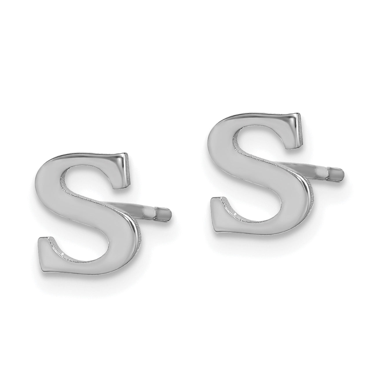 Sterling Silver Rhodium plated Letter S Initial Post Earrings