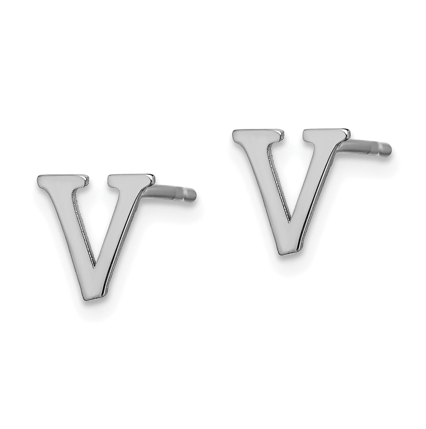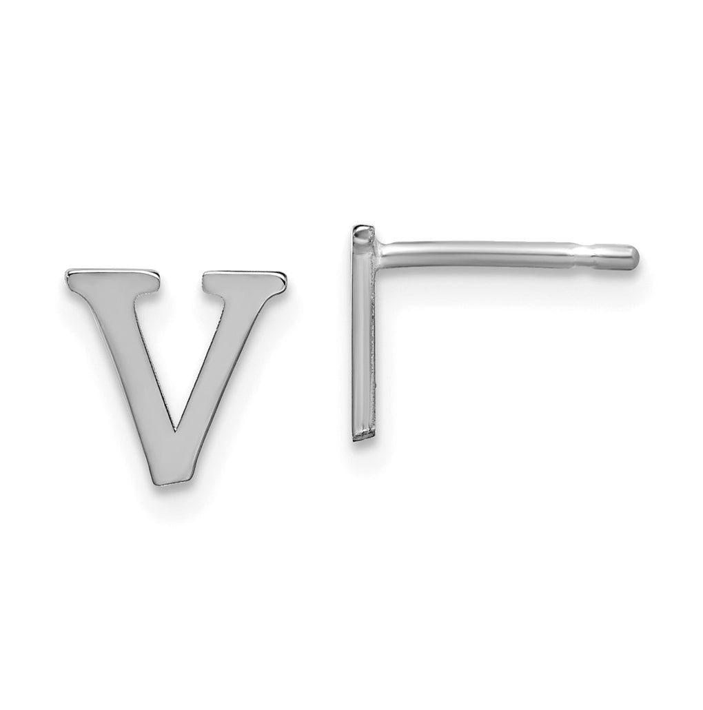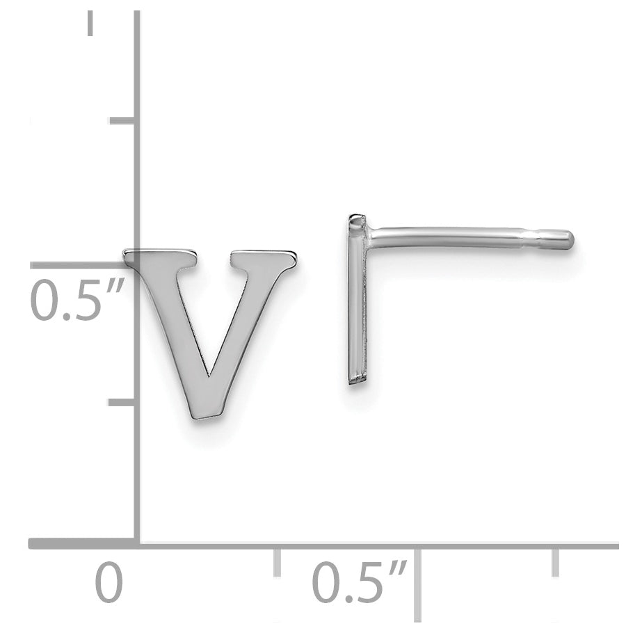 Sterling Silver Rhodium plated Letter V Initial Post Earrings