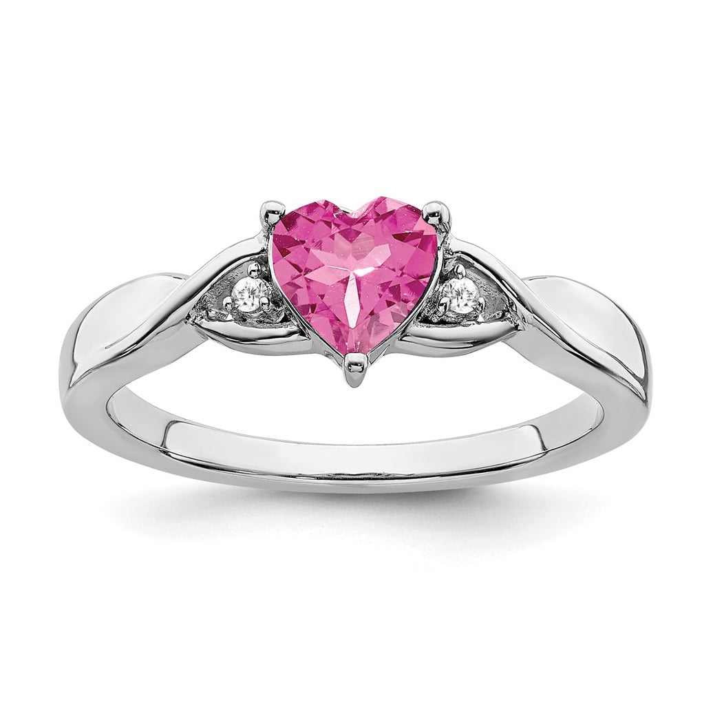 Sterling Silver Rhodium-Plated Pink Tourmaline and Diamond Ring, Size 7