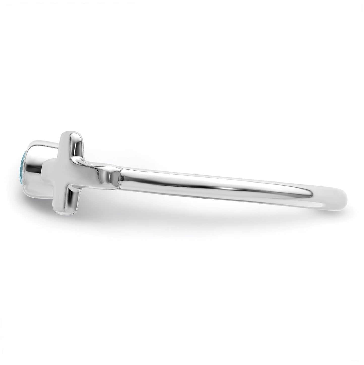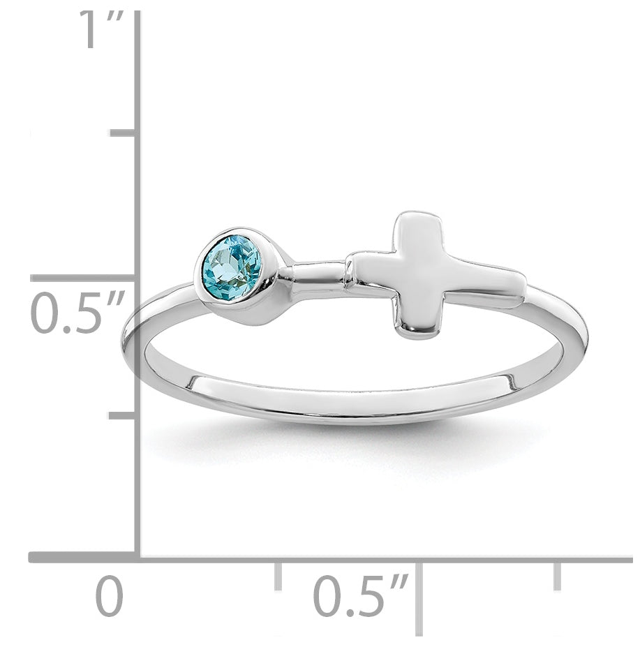 Sterling Silver Rhodium plated Polished Cross LS Blue Topaz Ring, Size 6