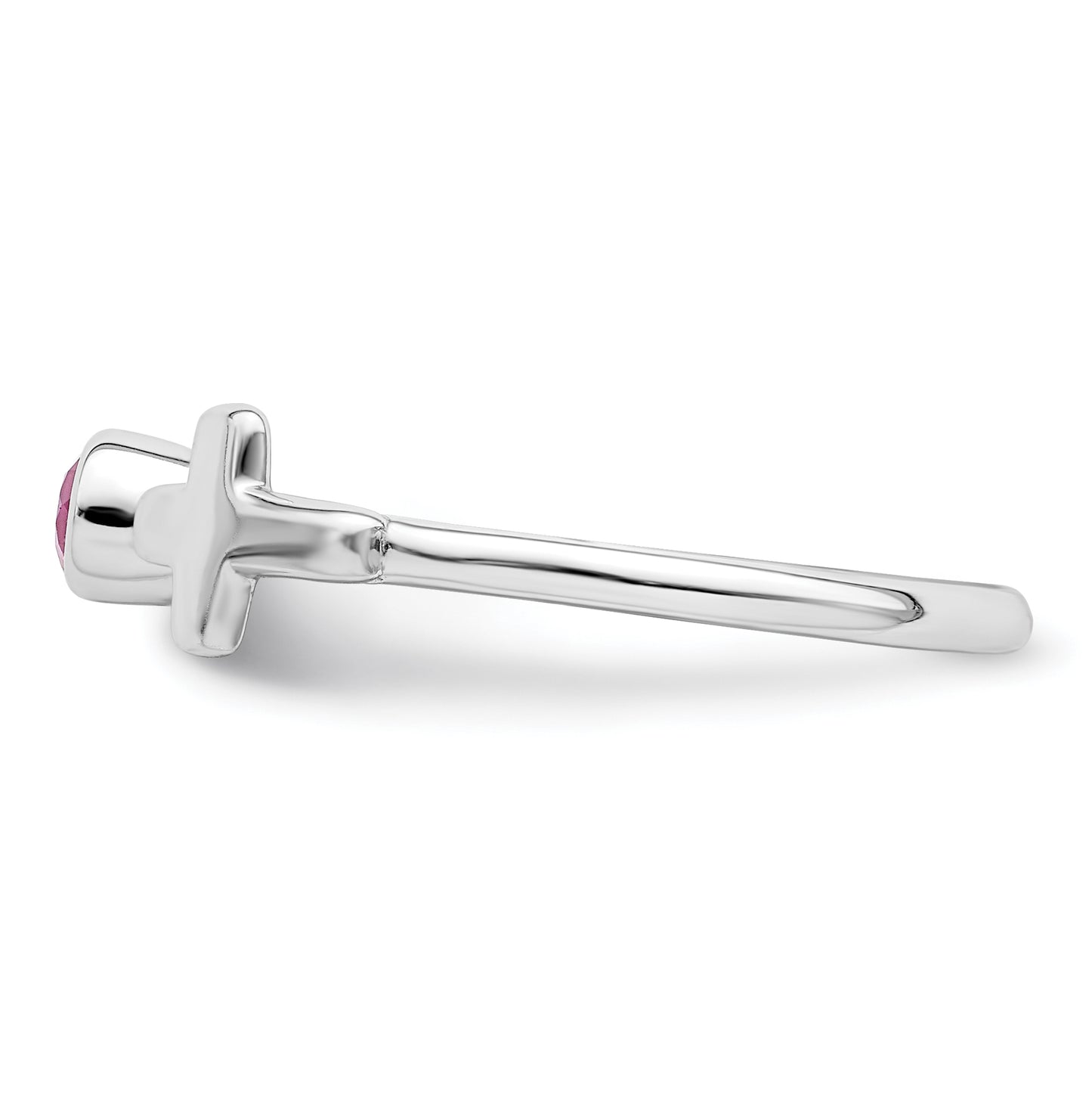 Sterling Silver Rhodium plated Polished Cross Pink Tourmaline Ring, Size 7
