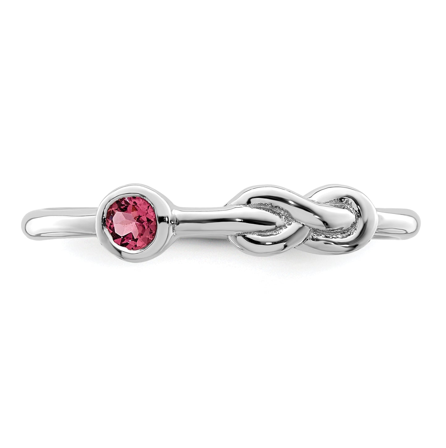 Sterling Silver Rhodium plated Polished Infinity Pink Tourmaline Ring, Size 8