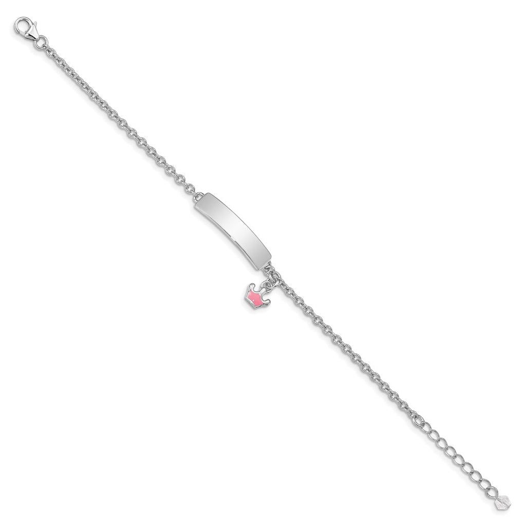 Sterling Silver Rhodium-plated Polished & Pink Enameled Crown with 1 Inch Extension Children's ID Bracelet