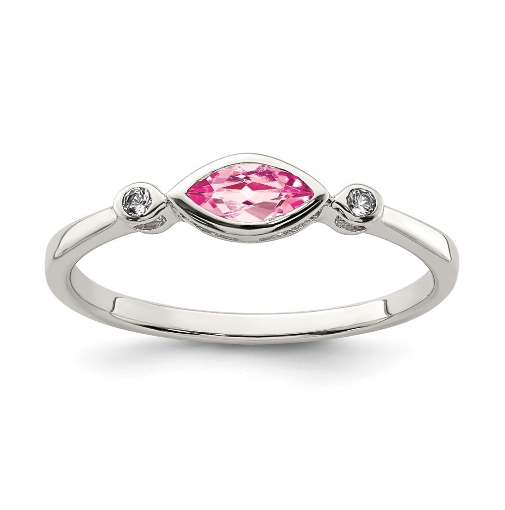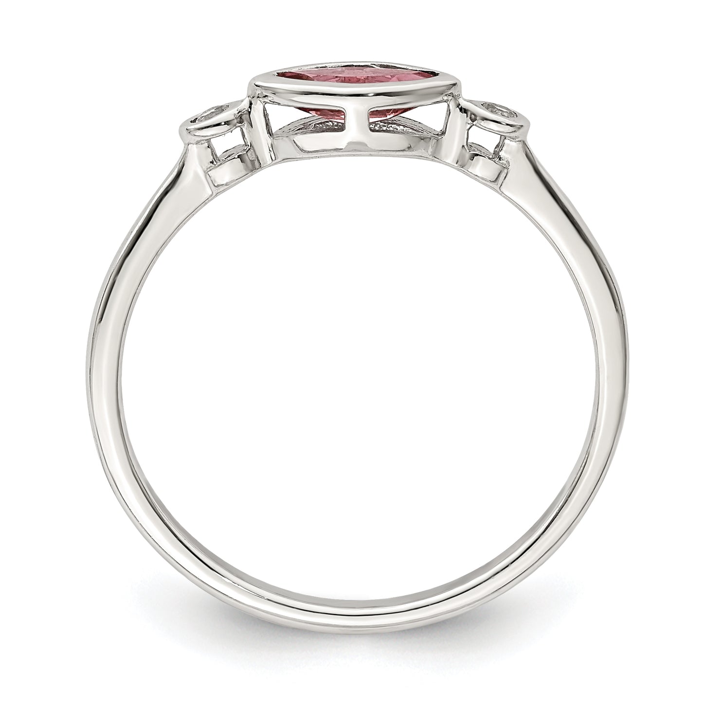Sterling Silver Rhodium Plated Polished Pink Tourmaline/ White Topaz Ring, Size 8