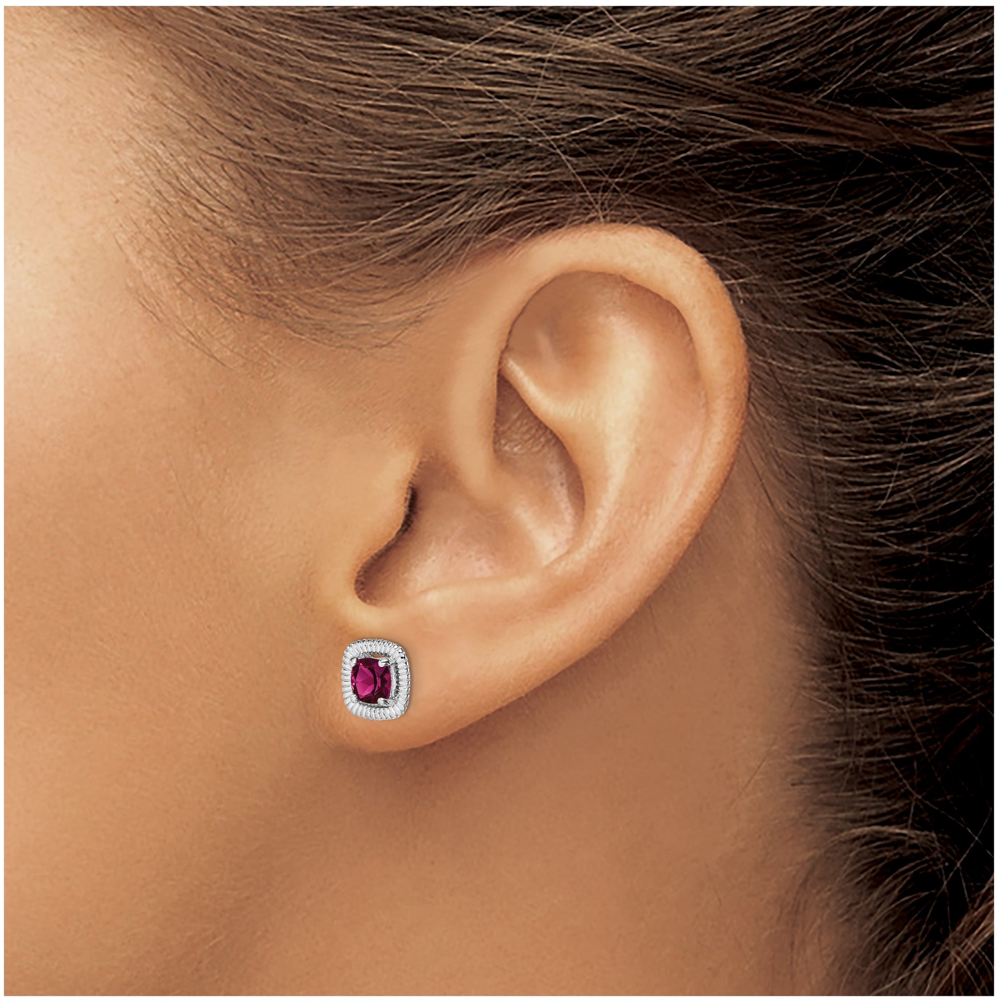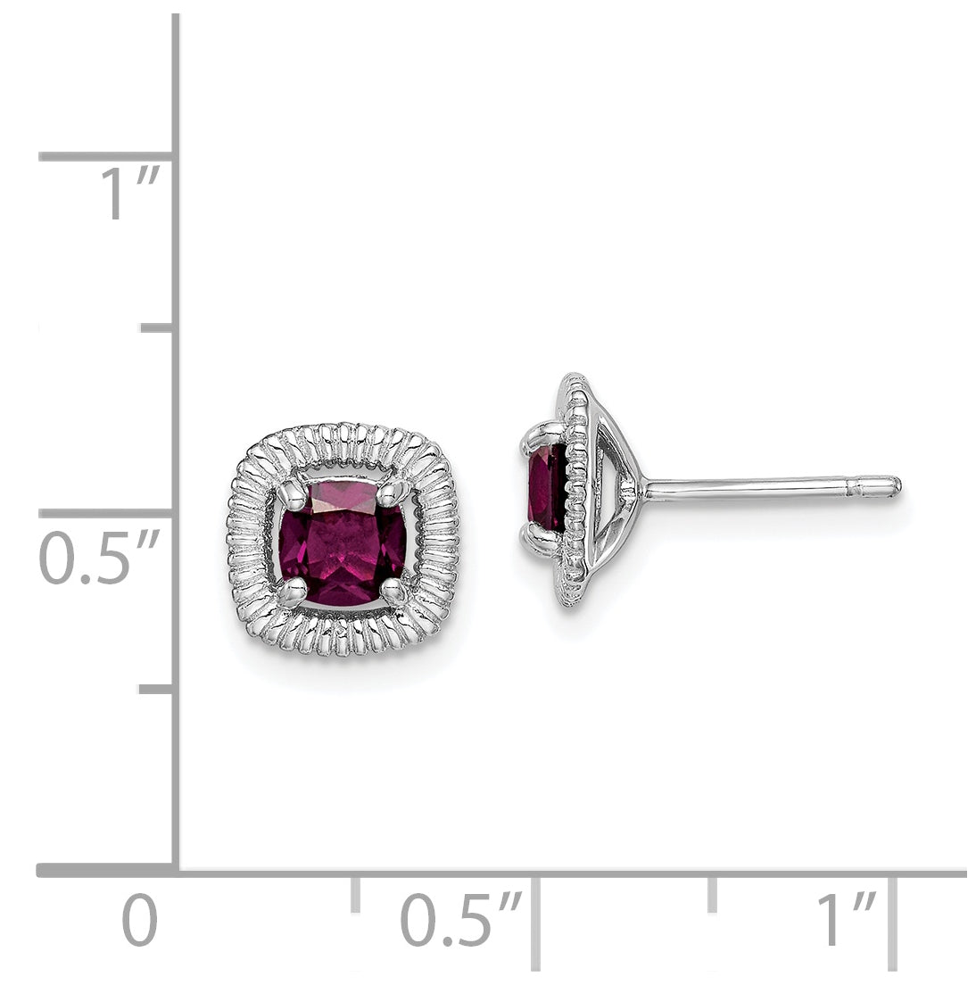 Sterling Silver Rhodium Plated Rhodolite Garnet Square Post Earrings
