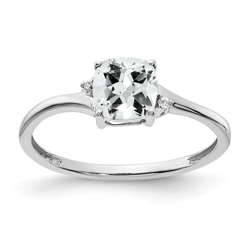 Sterling Silver Rhodium plated White Topaz and Dia Ring, Size 6
