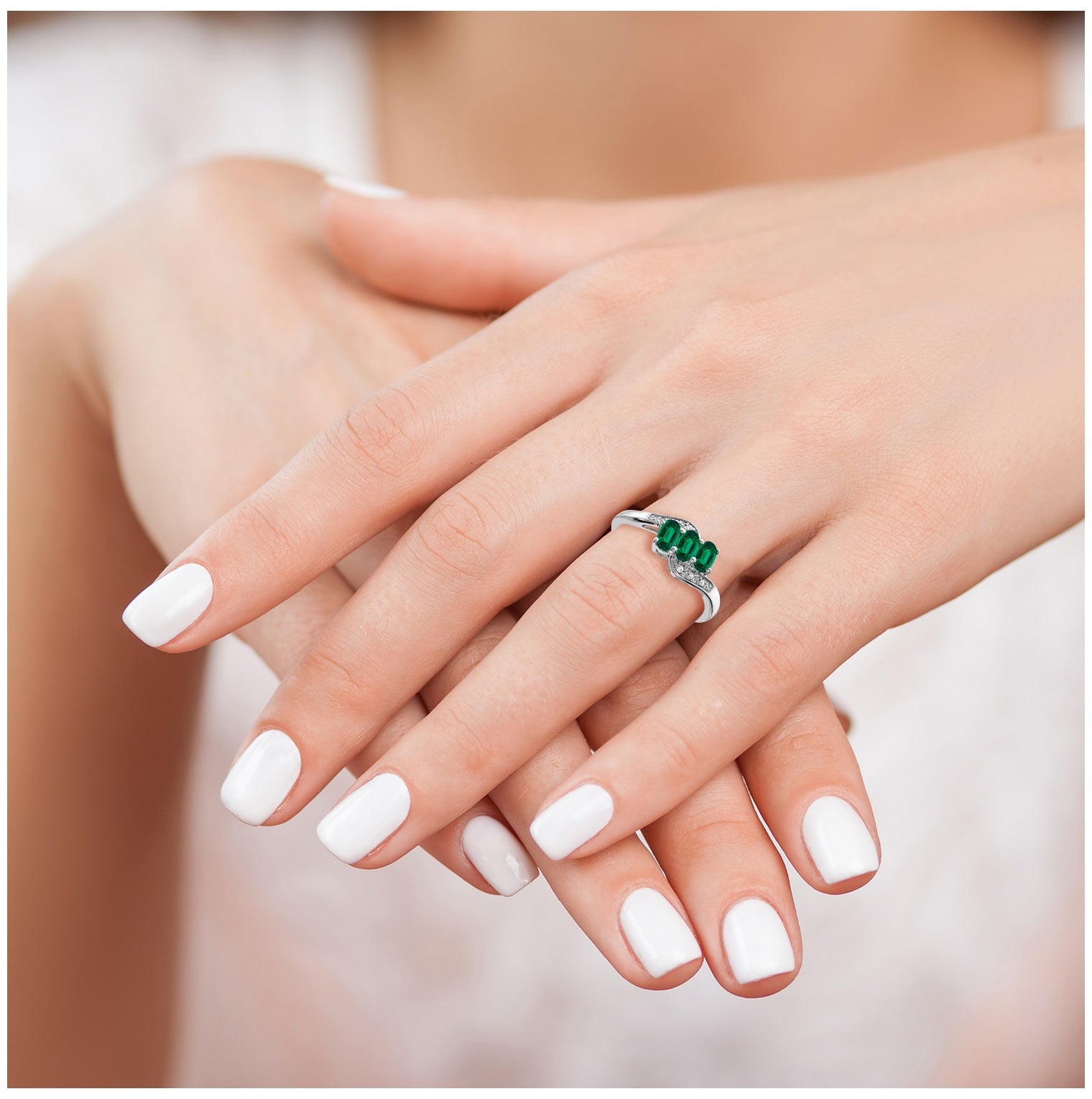 Sterling Silver Rhodium-PlatedCreated Emerald and Diamond Ring, Size 8
