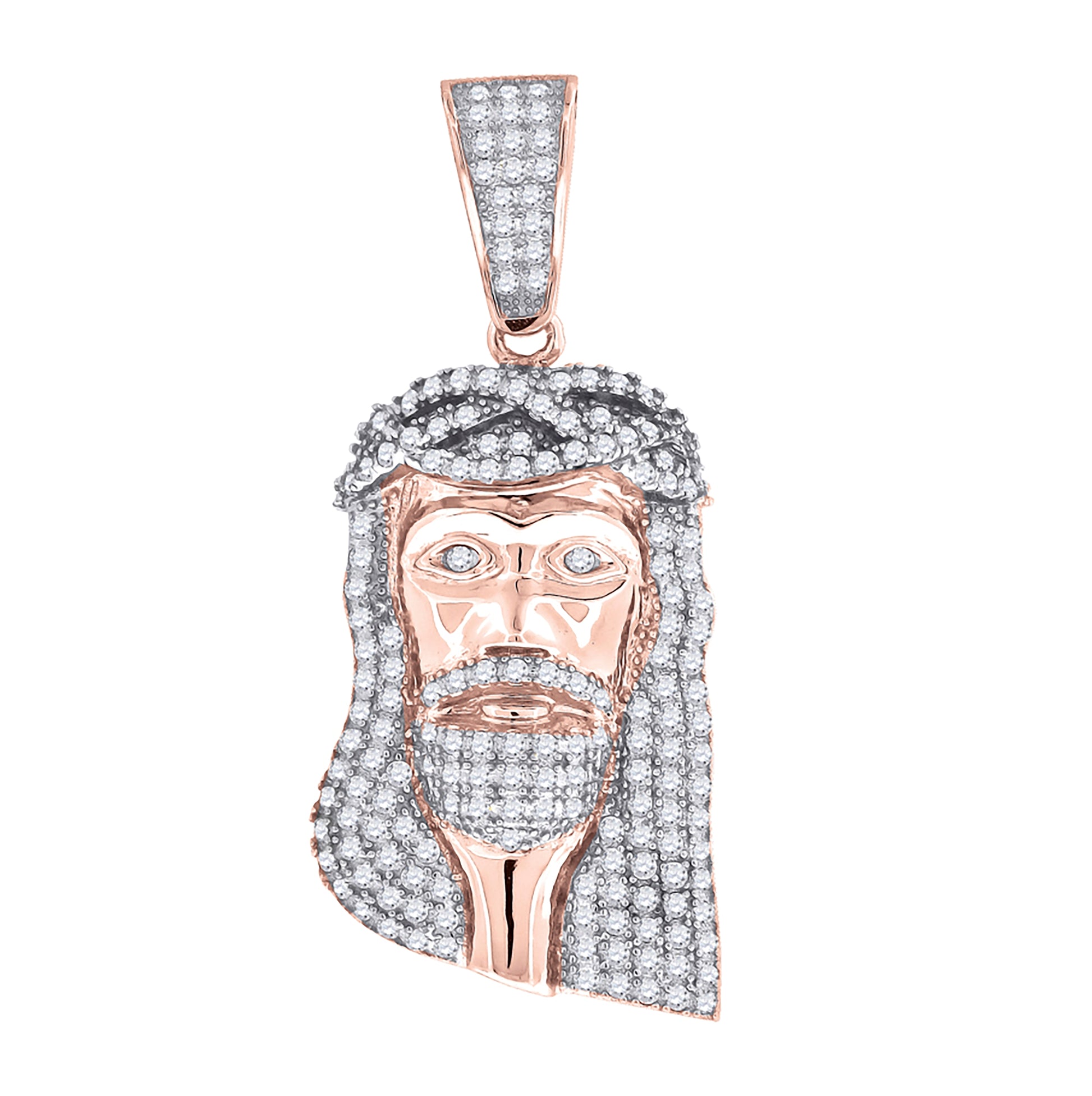 Sterling Silver Rose-Tone Or Yellow-tone Mens Cubic Zirconia Jesus Religious Charm Pendant
