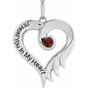 Sterling Silver Round 3 Mm Natural Mozambique Garnet Heart Pendant With Engraving I'll Hold You In My Heart