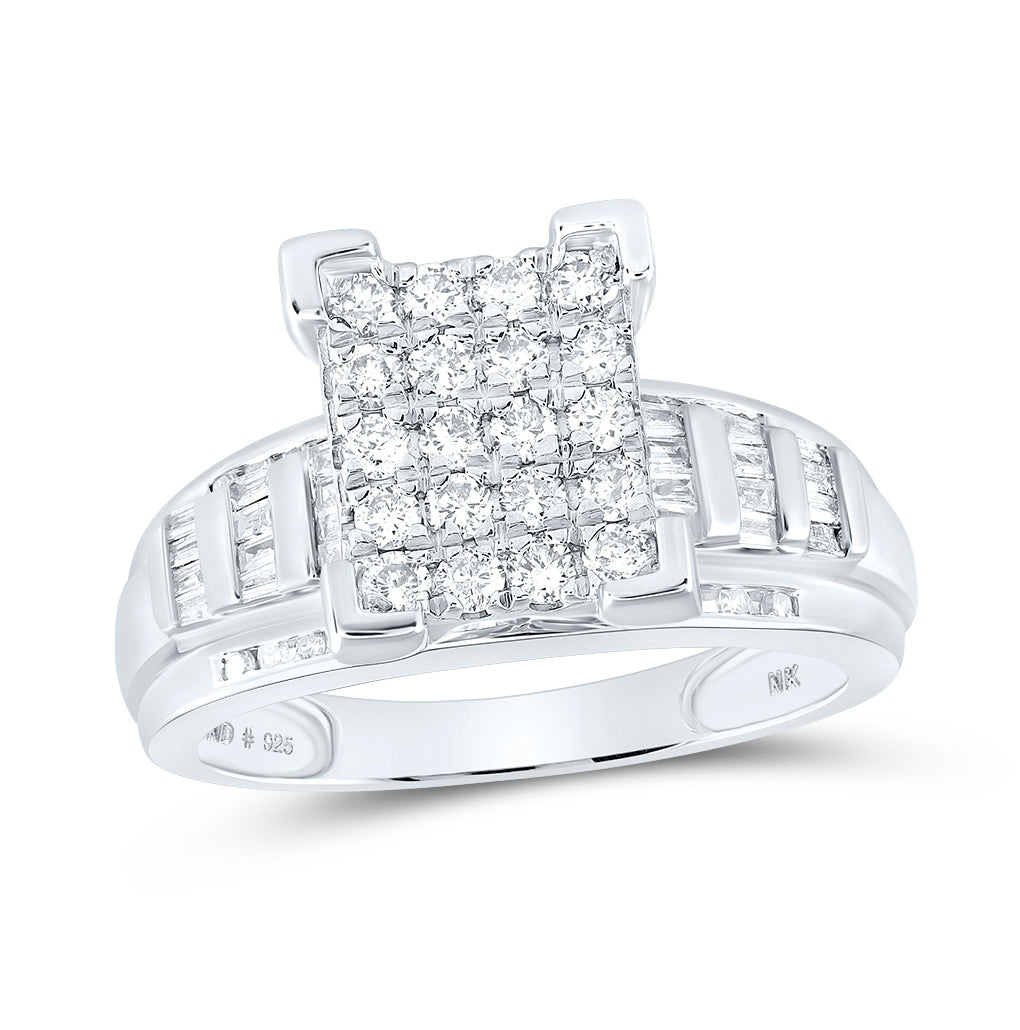 Sterling Silver Round Diamond Rectangle Cluster Bridal Wedding Engagement Ring 1 Cttw, Womens Size: 5-10