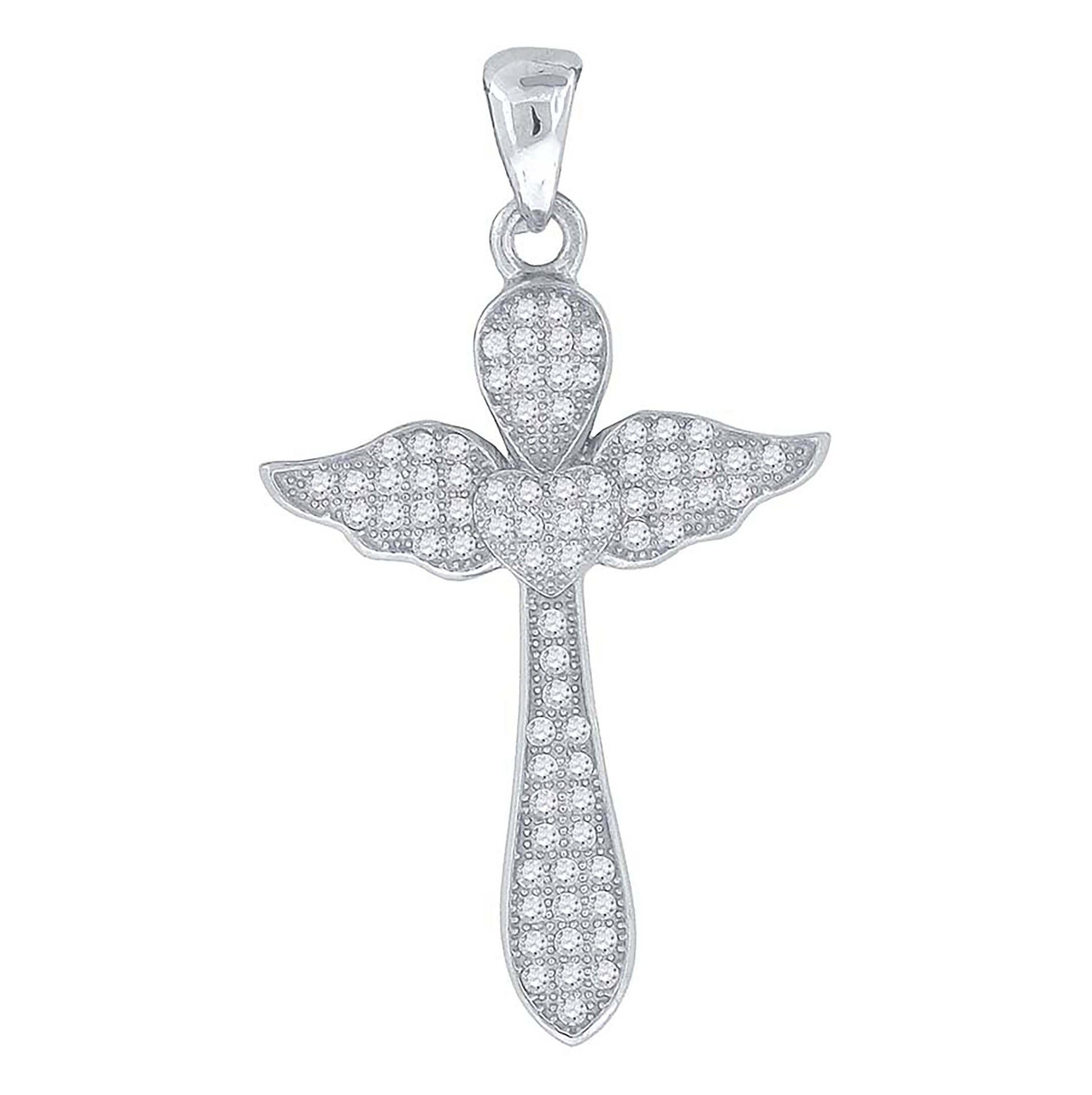 Sterling Silver Unisex Cubic-Zirconia Cross Religious Charm Pendant