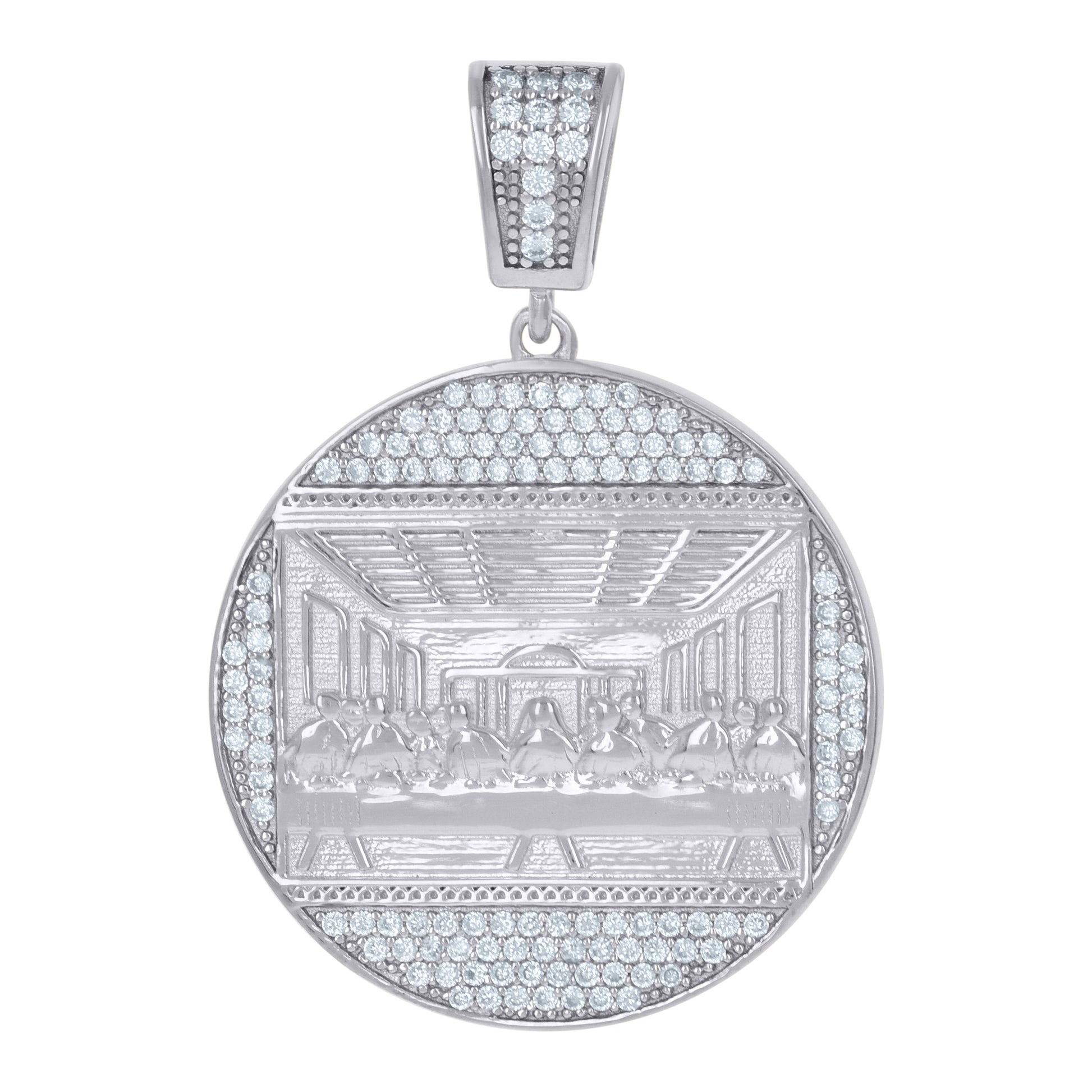 Sterling Silver Unisex Cubic Zirconia Last Supper Religious Pendant Charm