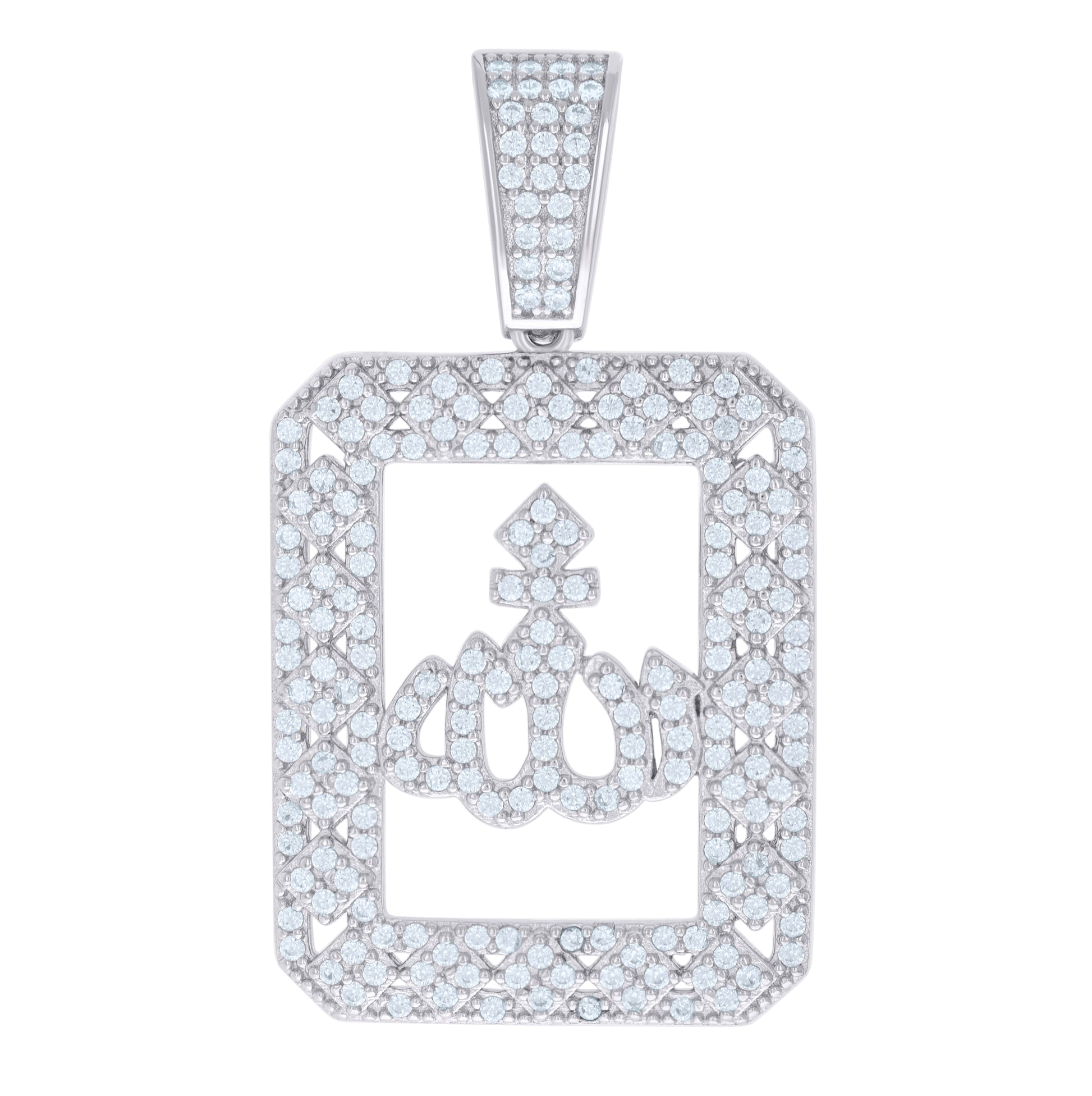 Sterling Silver Unisex Cubic Zirconia Religious Allah Charm Pendant