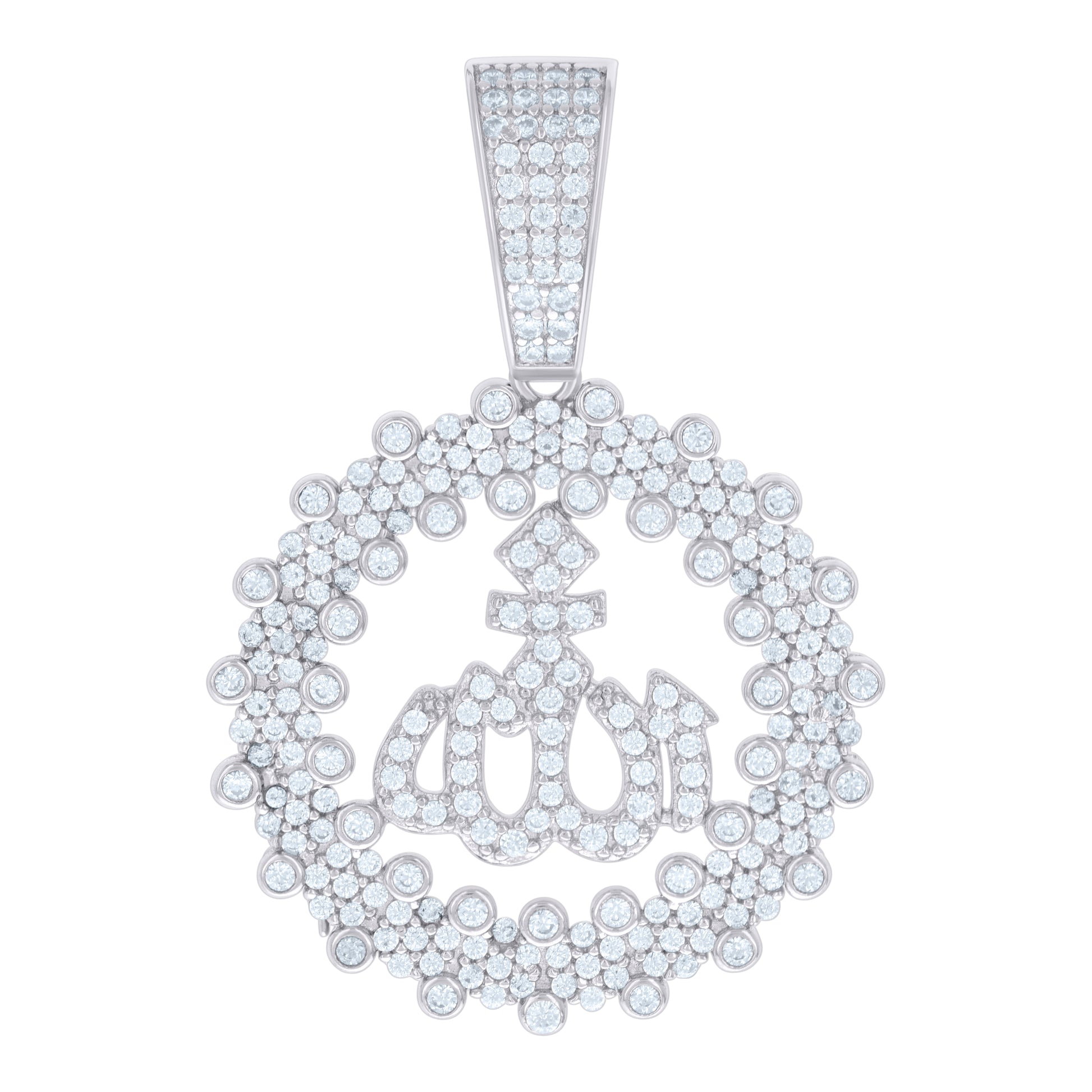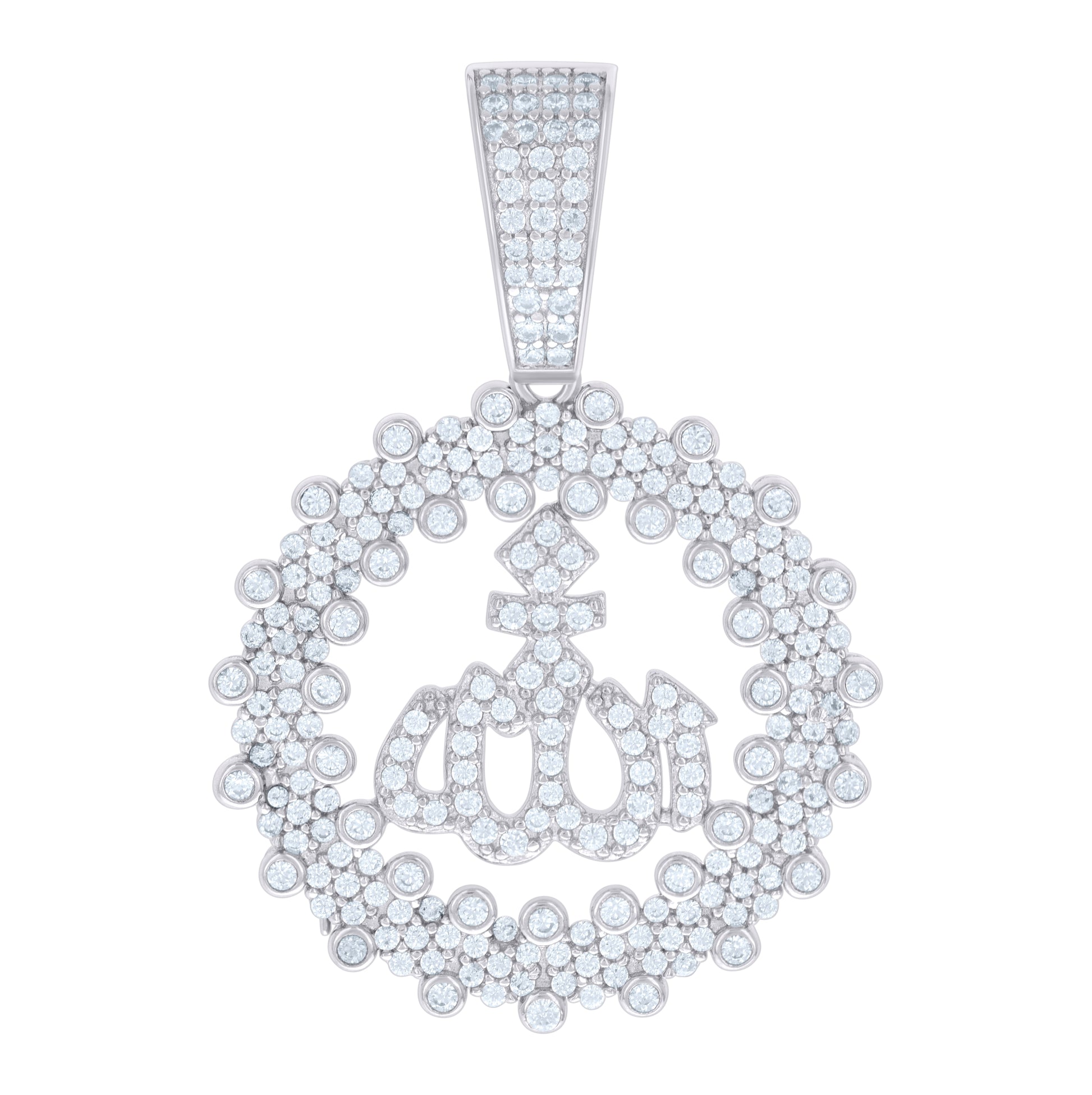 Sterling Silver Unisex Cubic Zirconia Religious Allah Charm Pendant