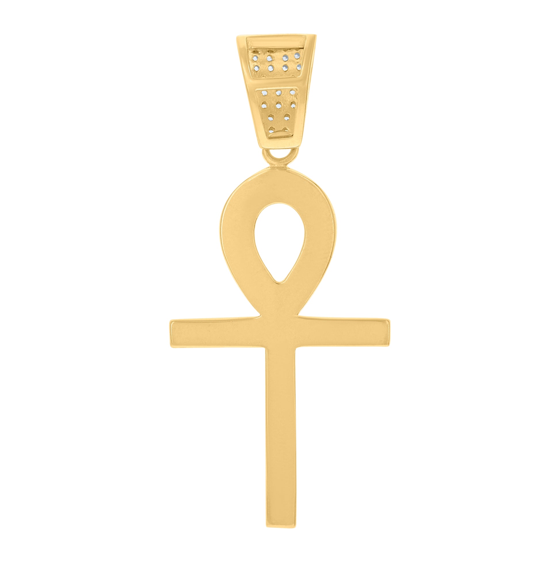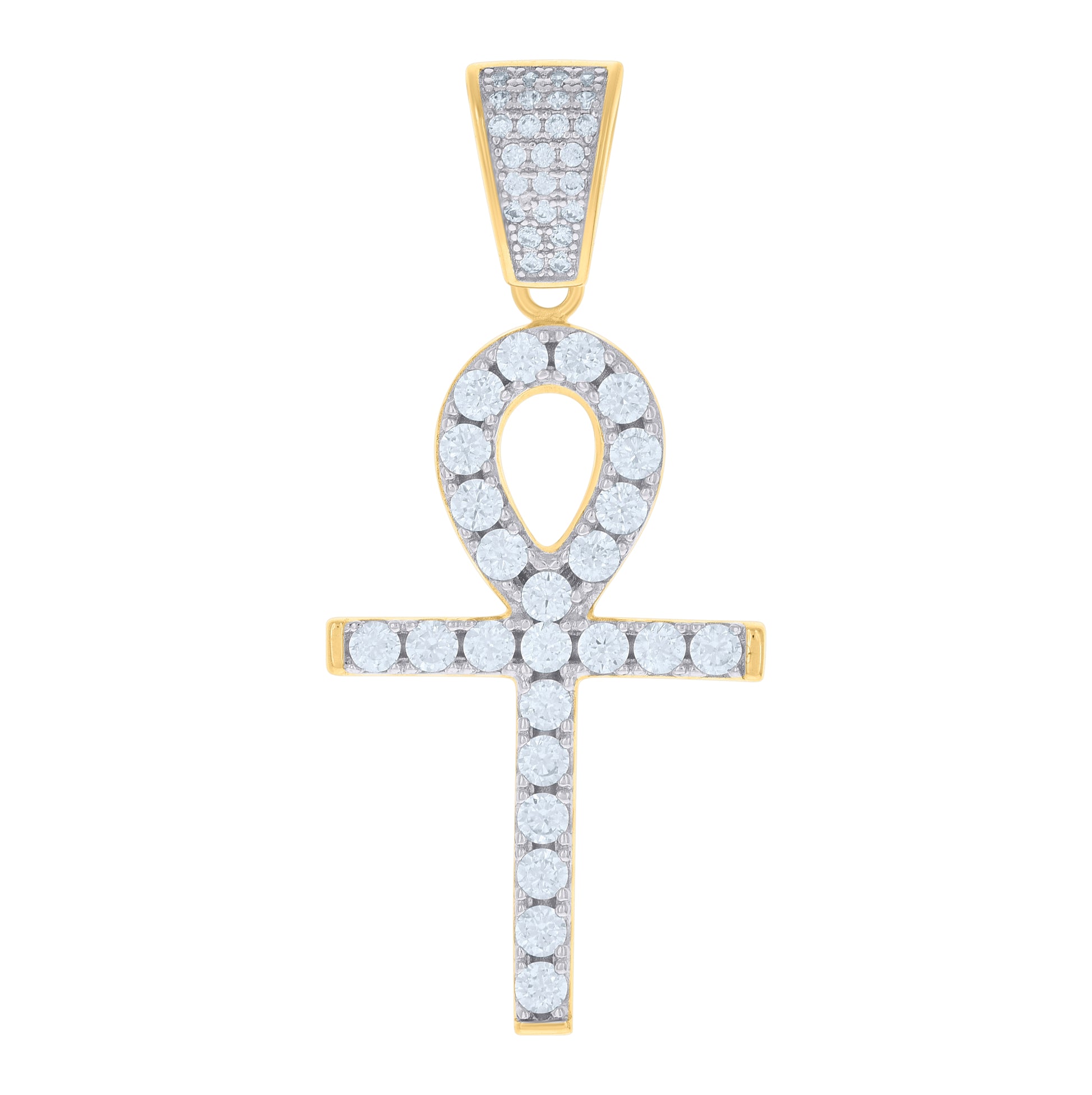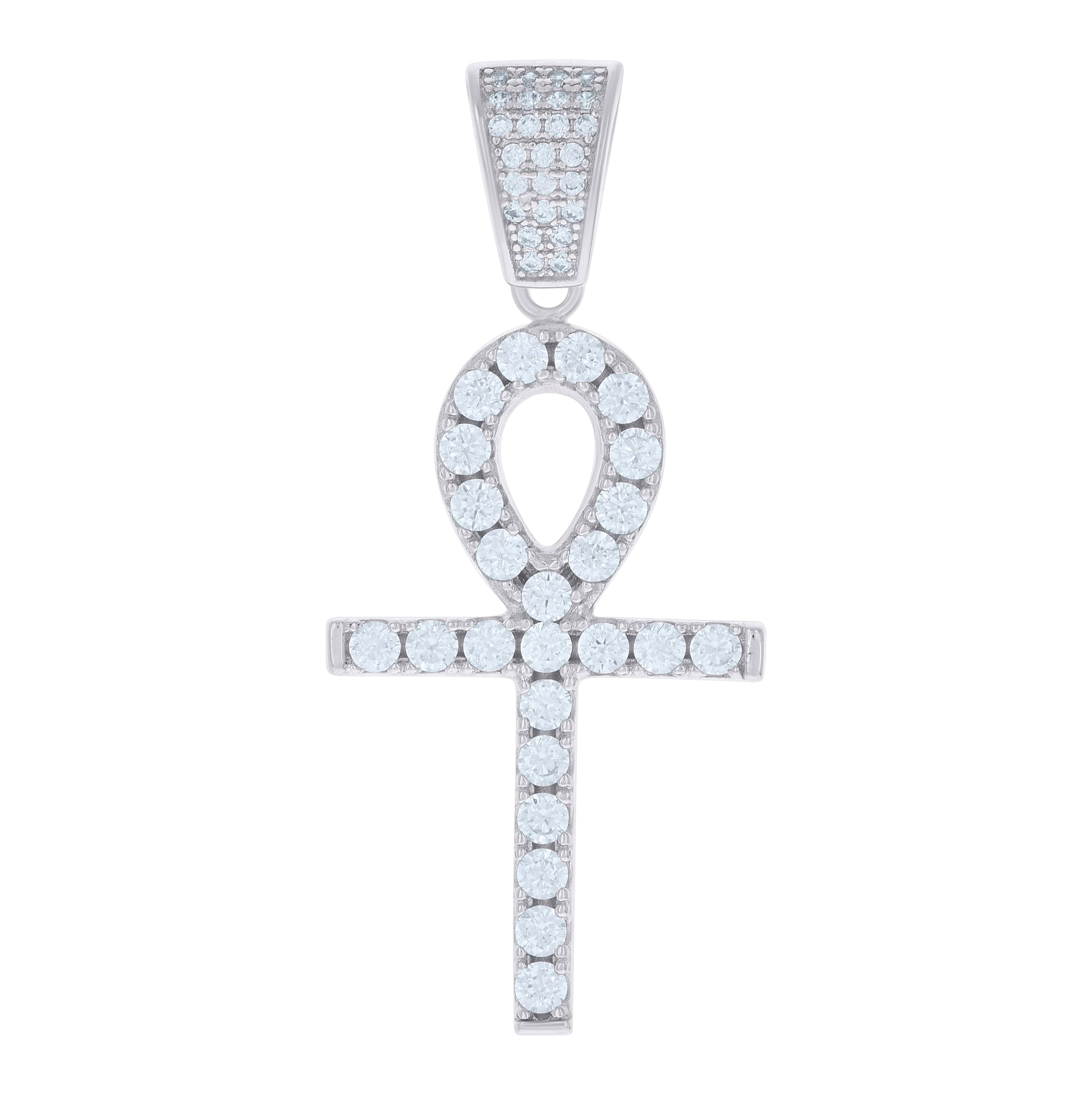 Sterling Silver Unisex Cubic Zirconia Ankh Cross Religious Charm Pendant
