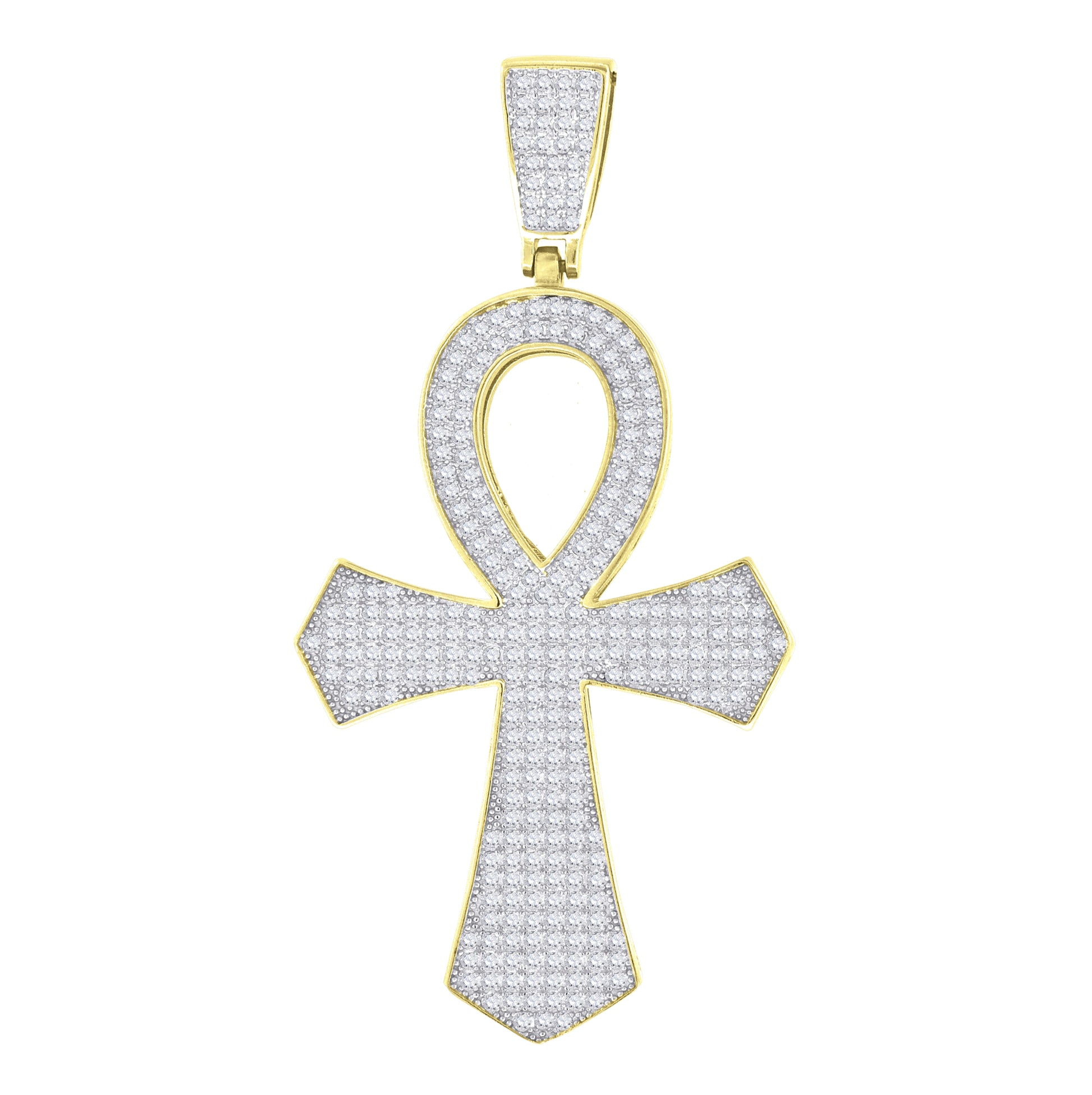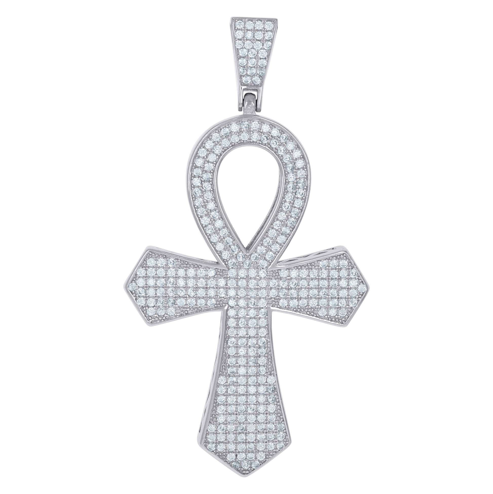 Sterling Silver Unisex Cubic Zirconia Ankh Cross Religious Charm Pendant