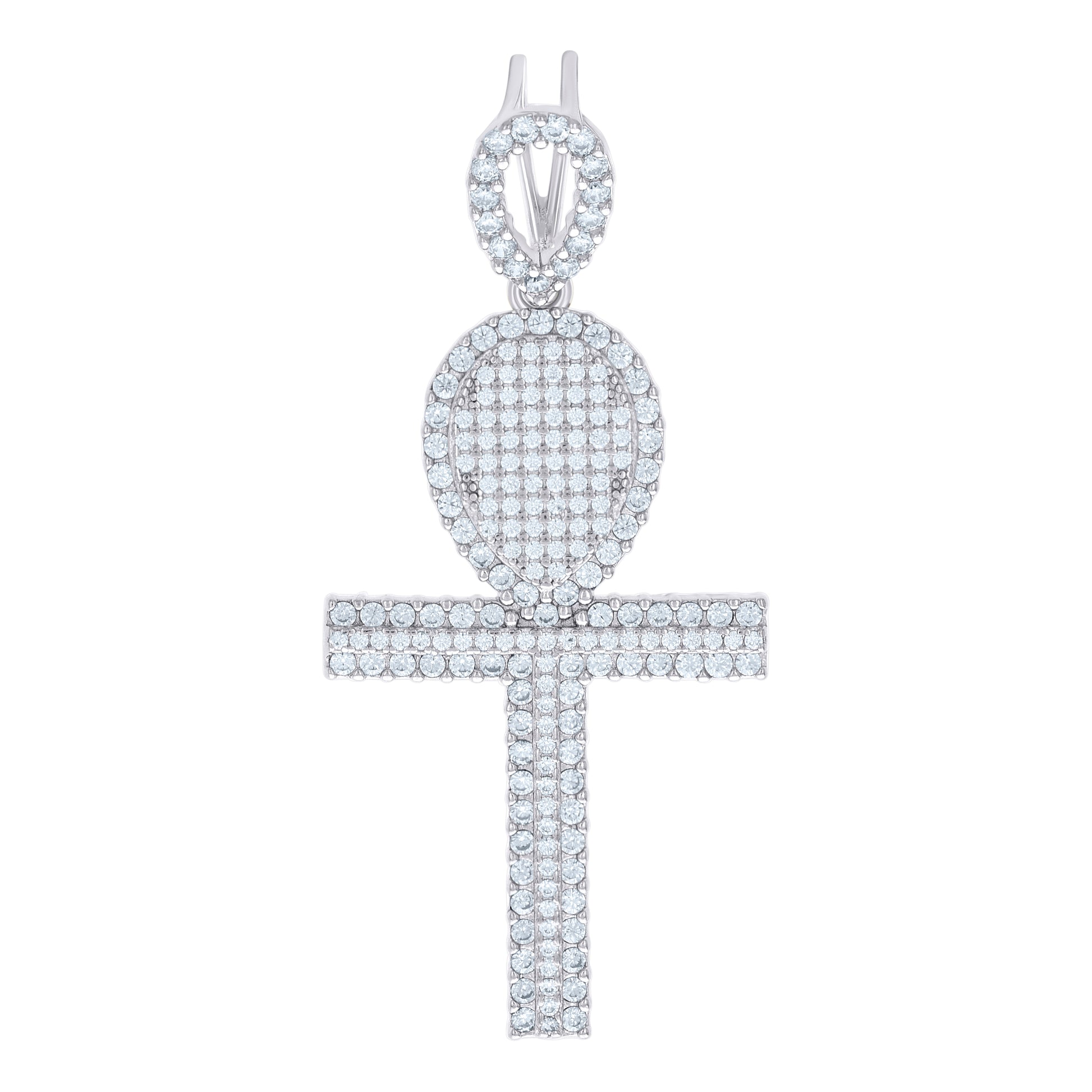 Sterling Silver Unisex Cubic Zirconia Ankh Cross Religious Charm Pendant