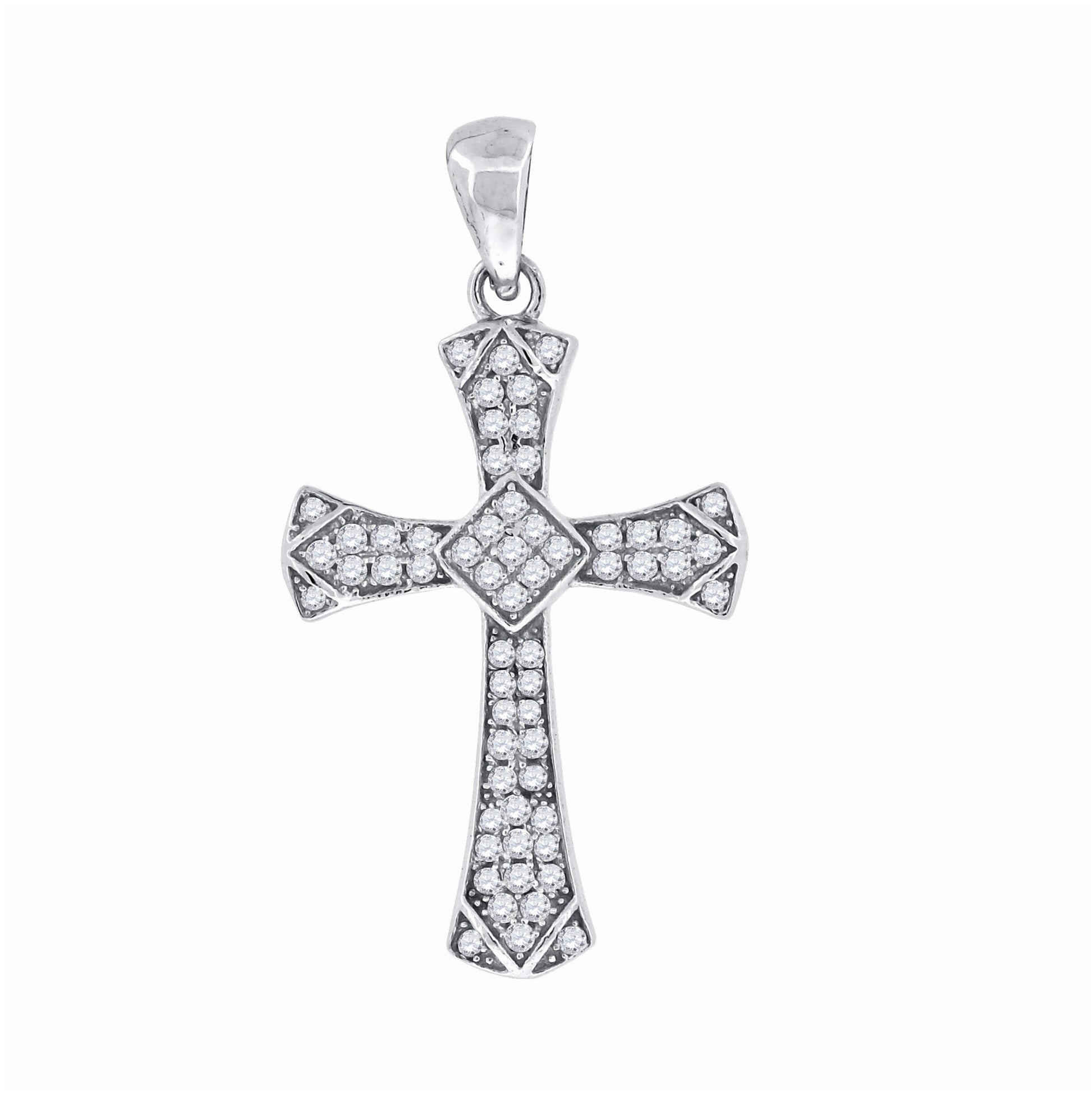 Sterling Silver Unisex Cubic-Zirconia Cross Religious Charm Pendant