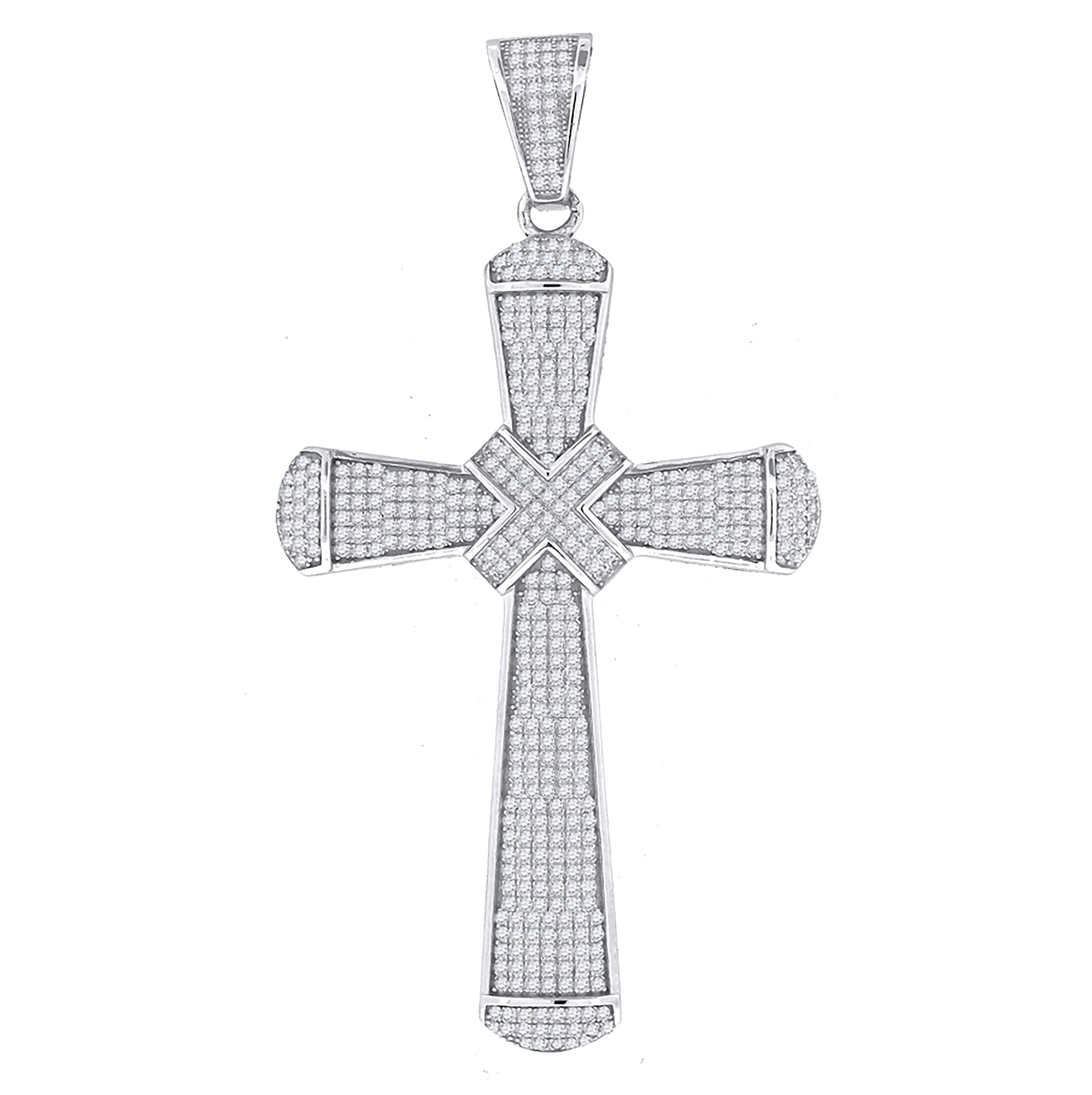 Sterling Silver Unisex Cubic-Zirconia Cross Religious Charm Pendant