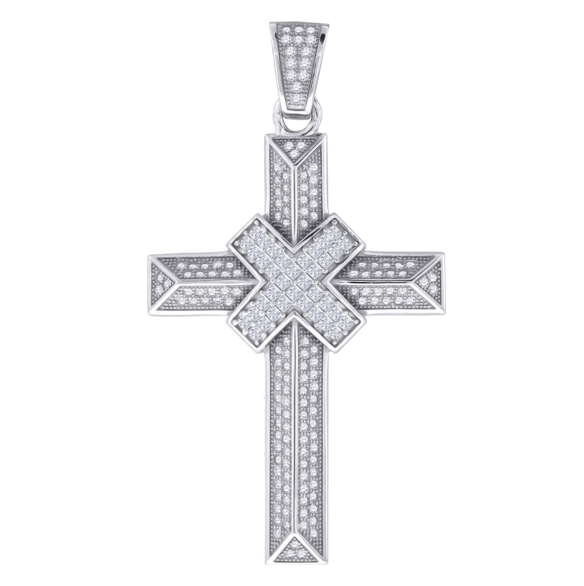 Sterling Silver Unisex Cubic-Zirconia Cross Religious Charm Pendant