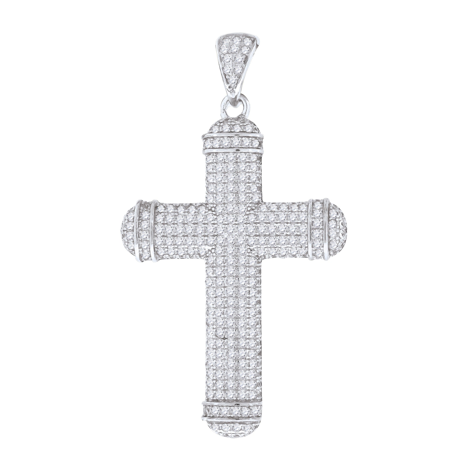 Sterling Silver Unisex Cubic Zirconia Cross Religious Charm Pendant