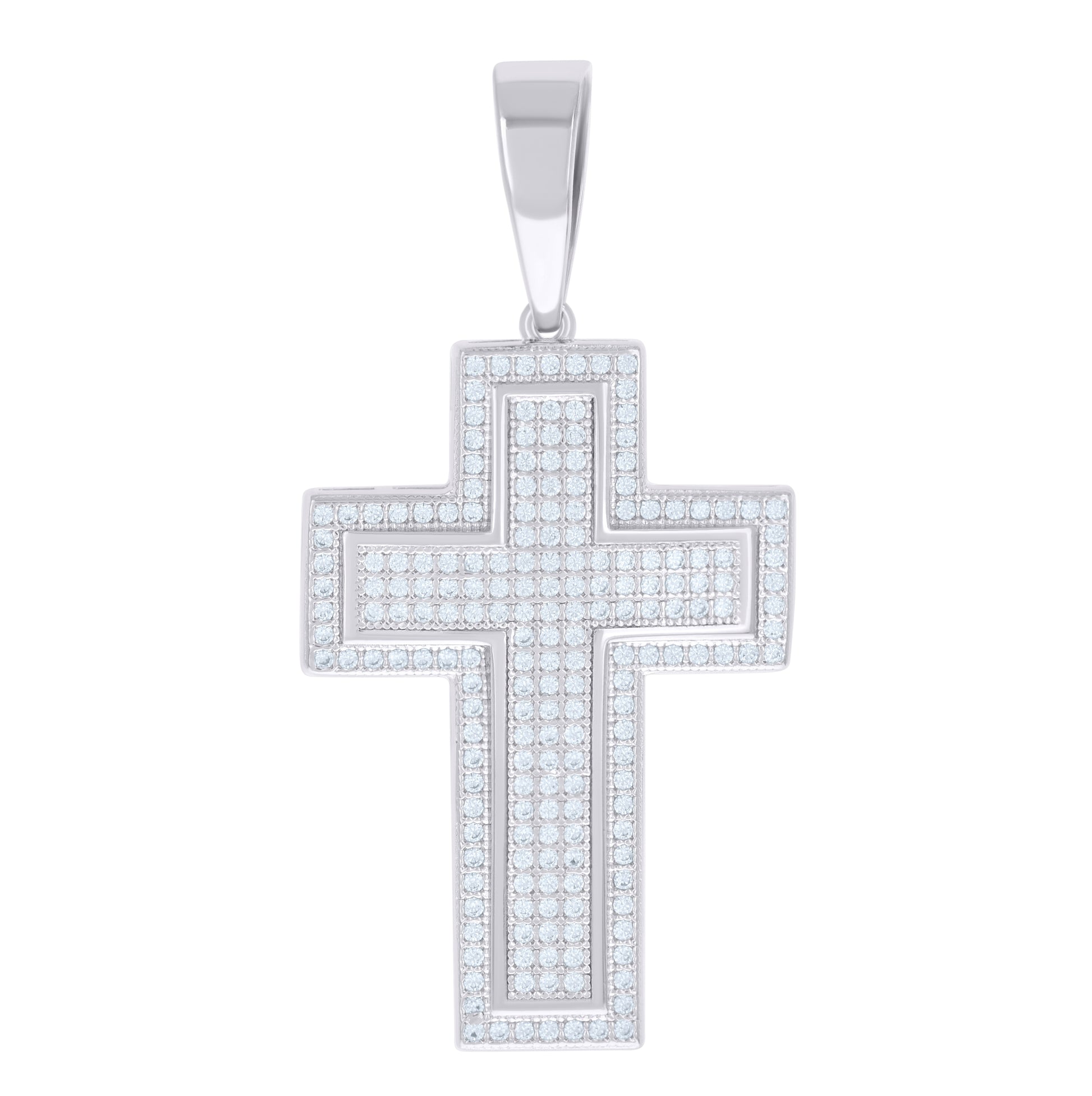 Sterling Silver Unisex Cubic Zirconia Cross Religious Charm Pendant
