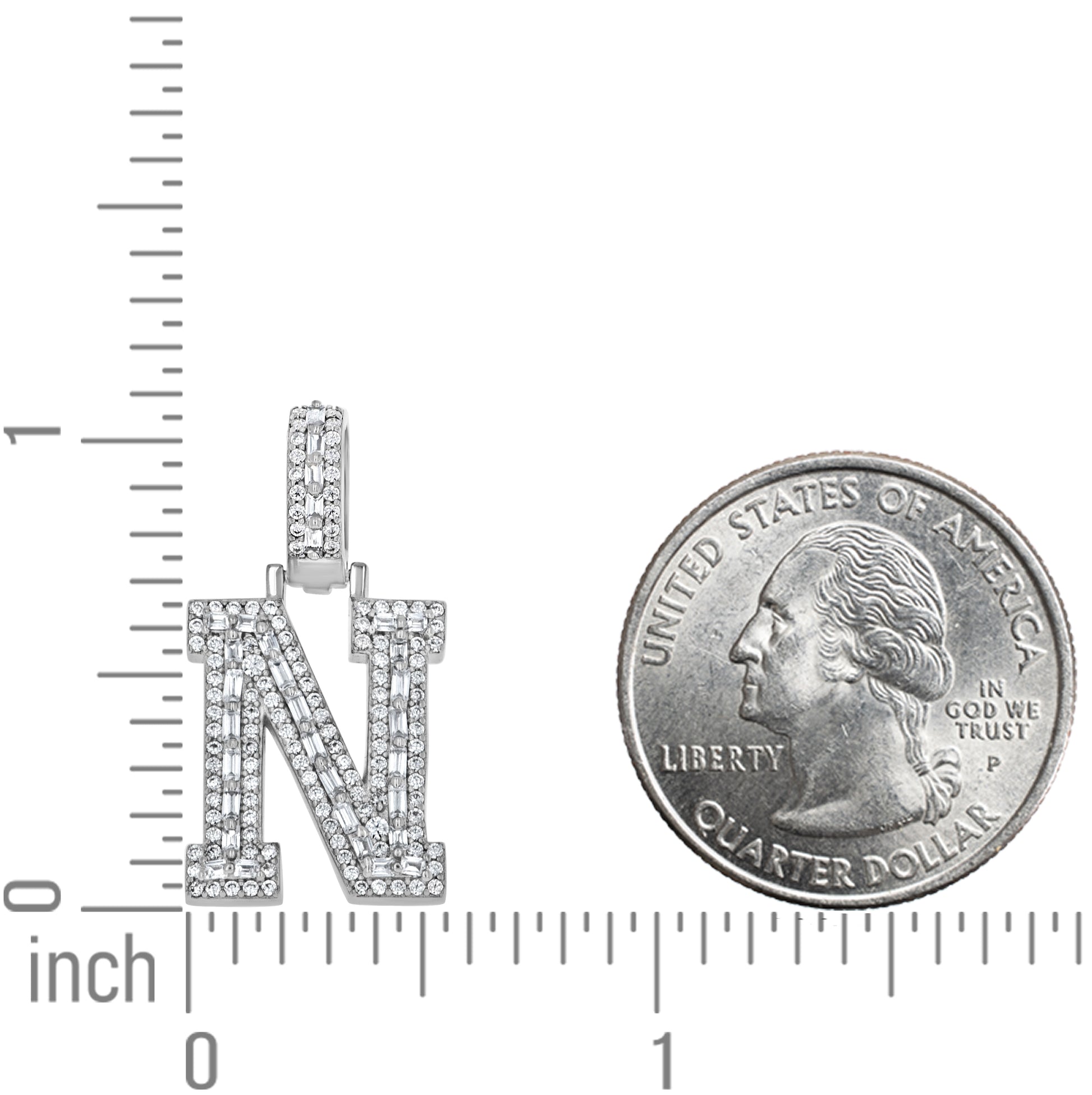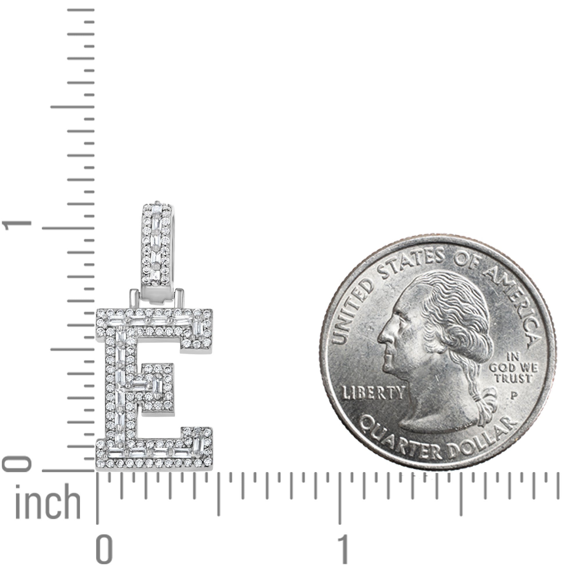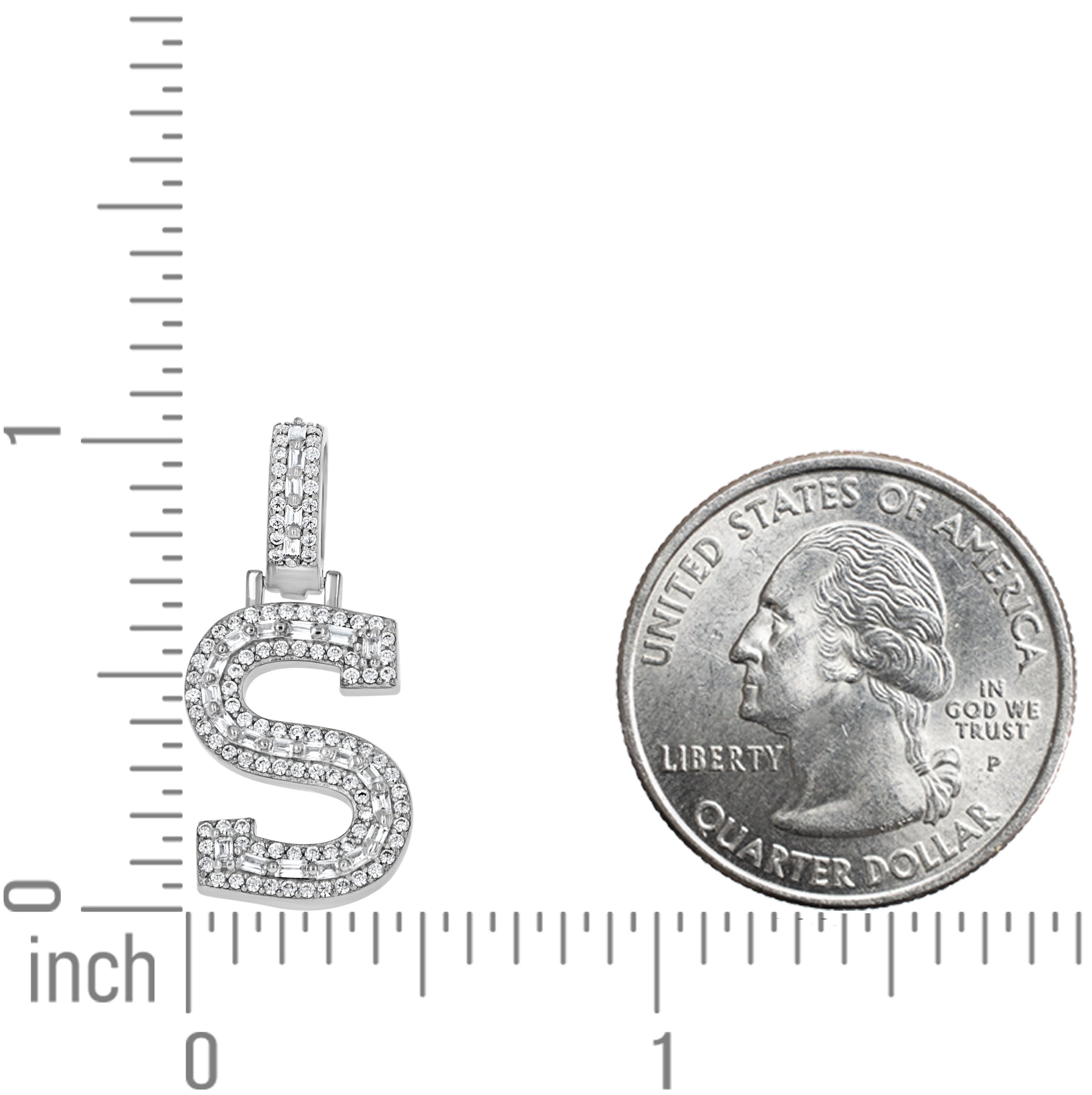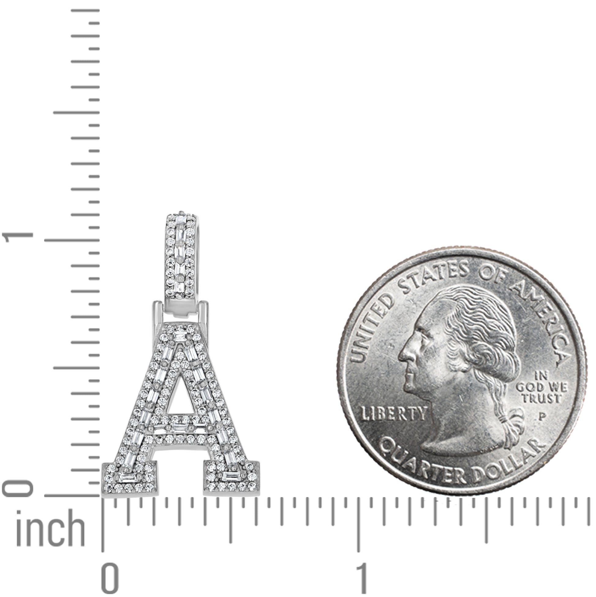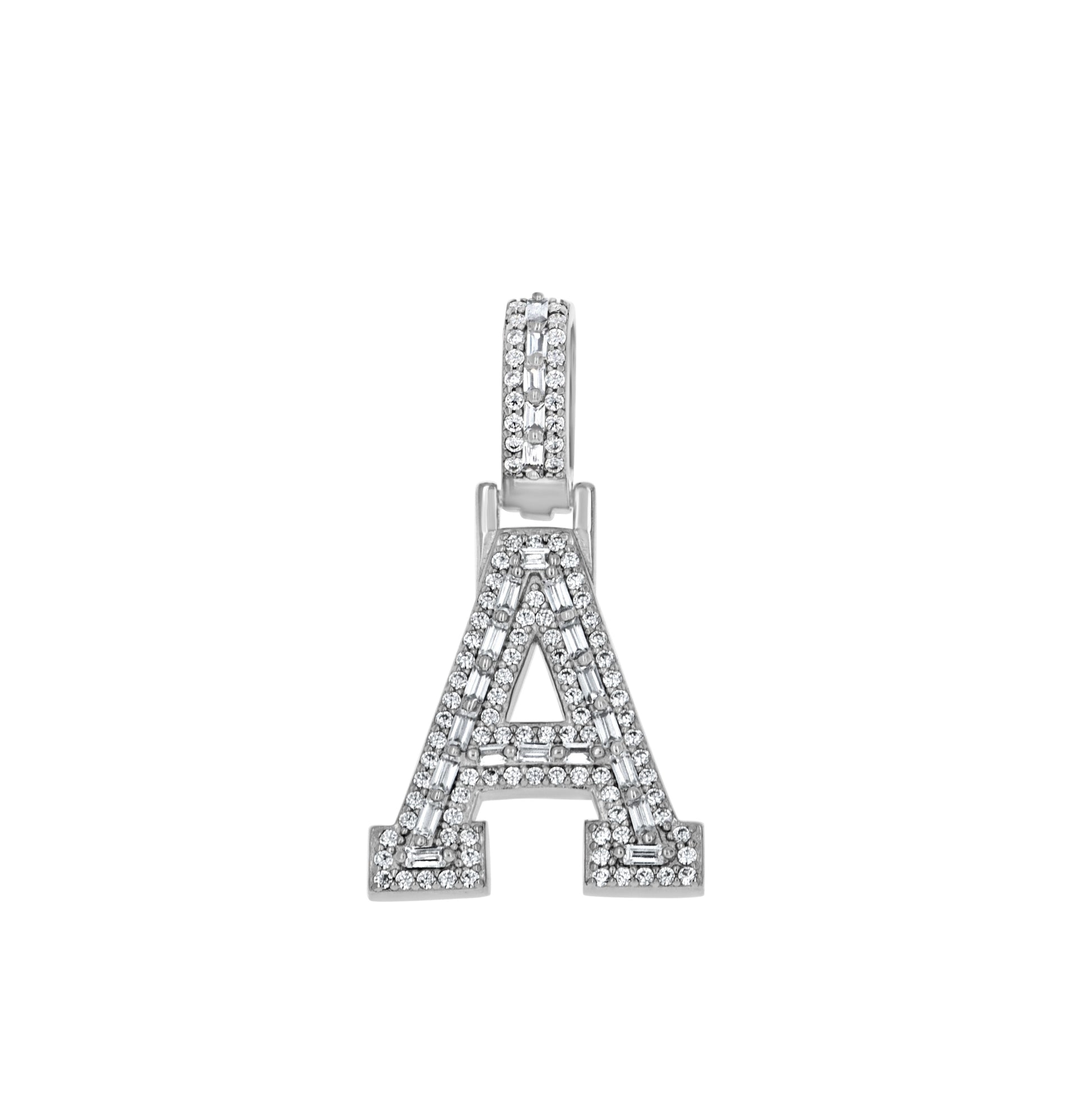 Sterling Silver Unisex Round Baguette Cubic Zirconia Initial Letter A Charm Pendant