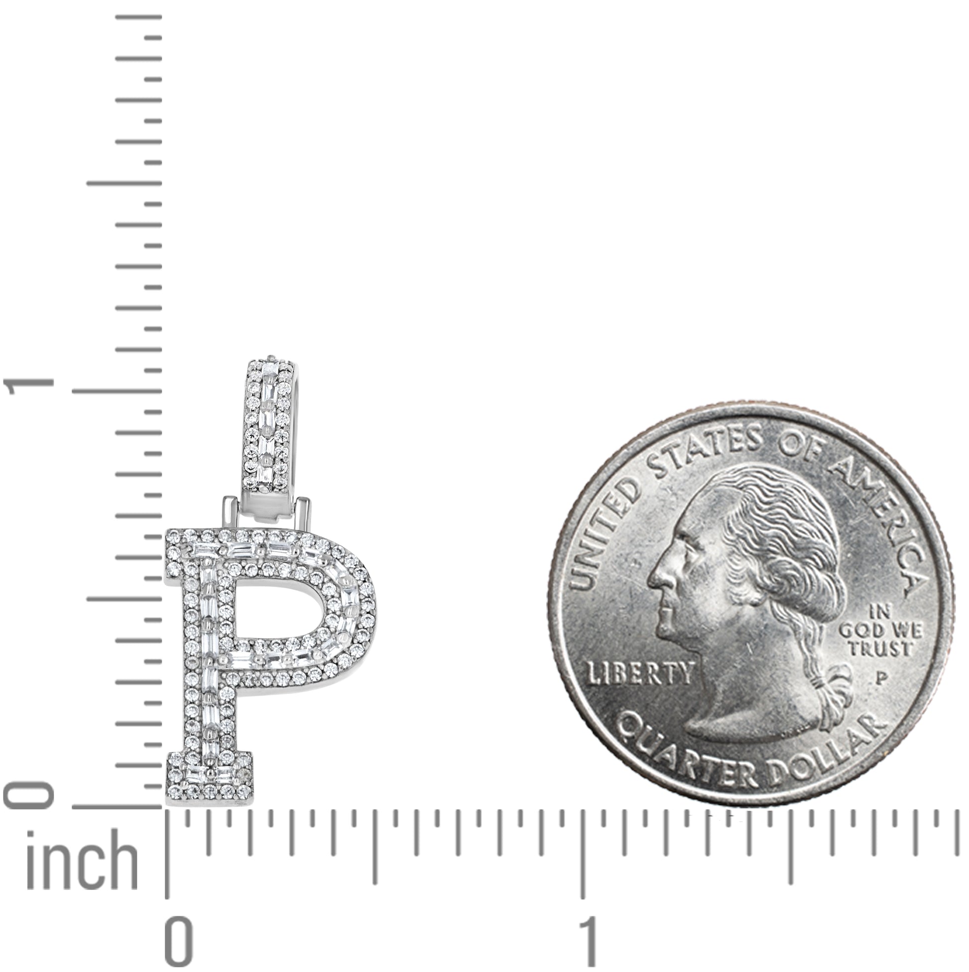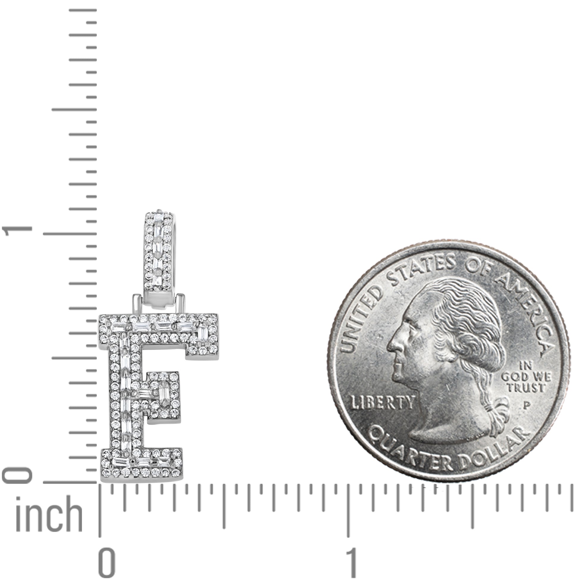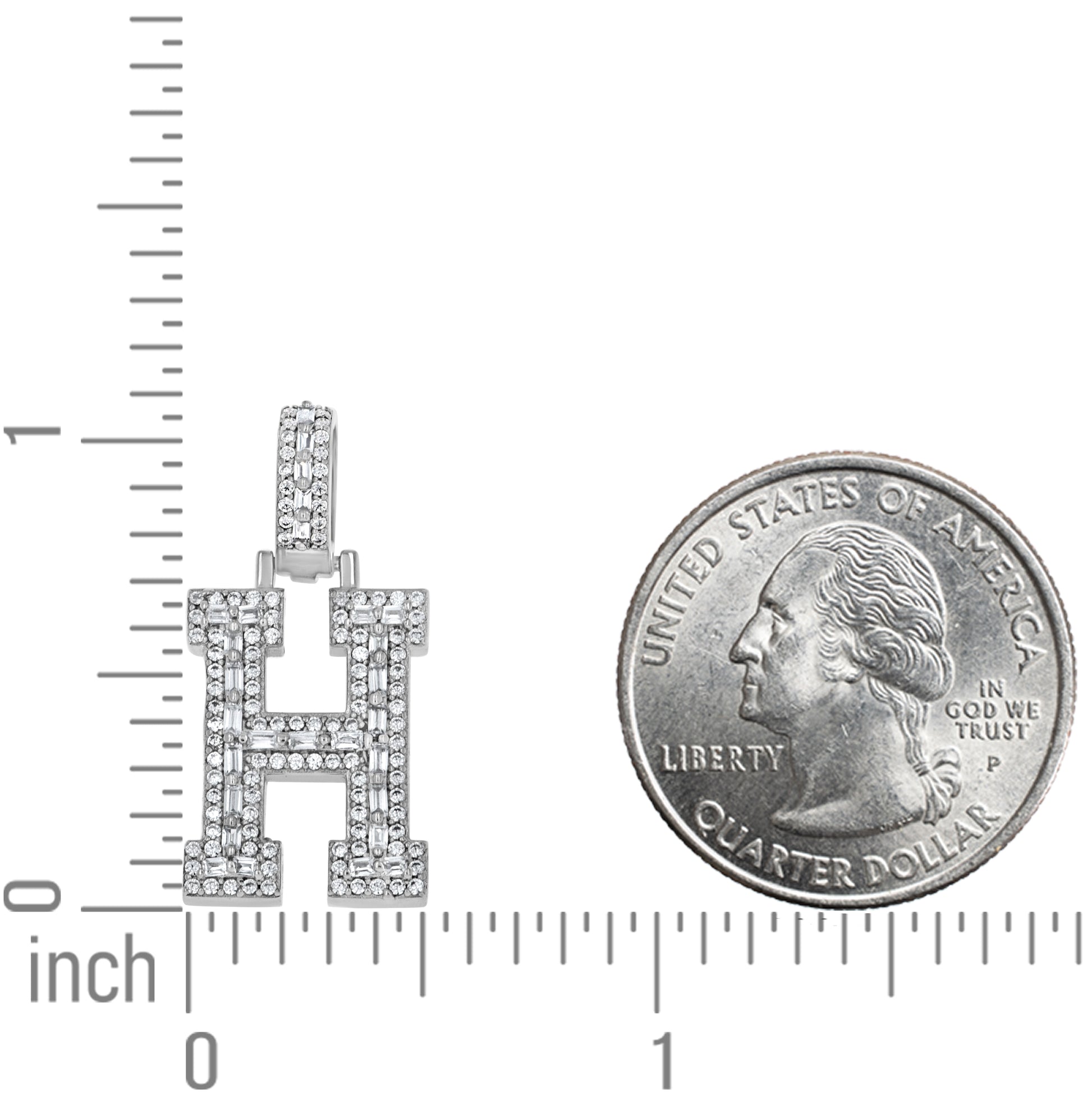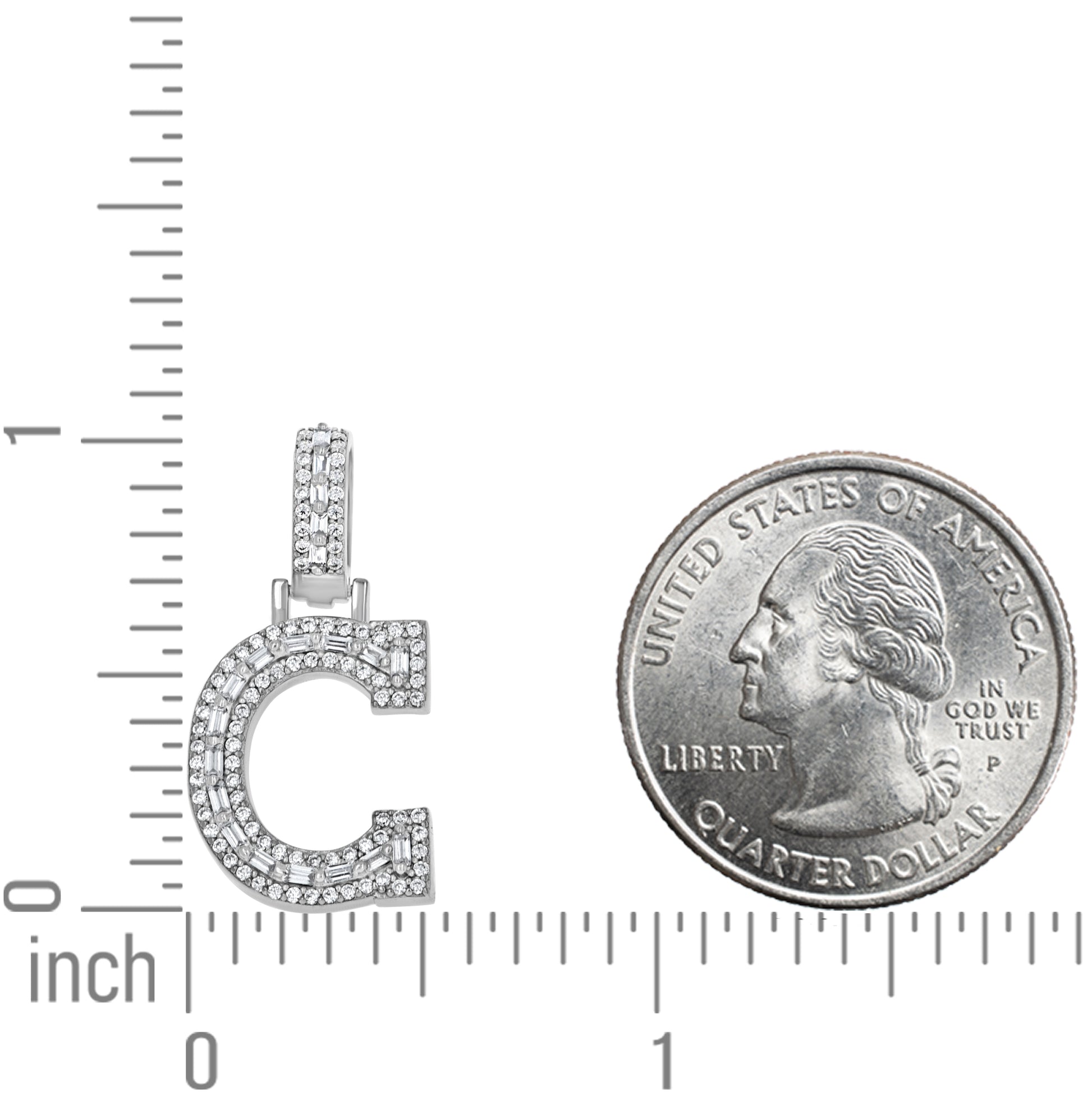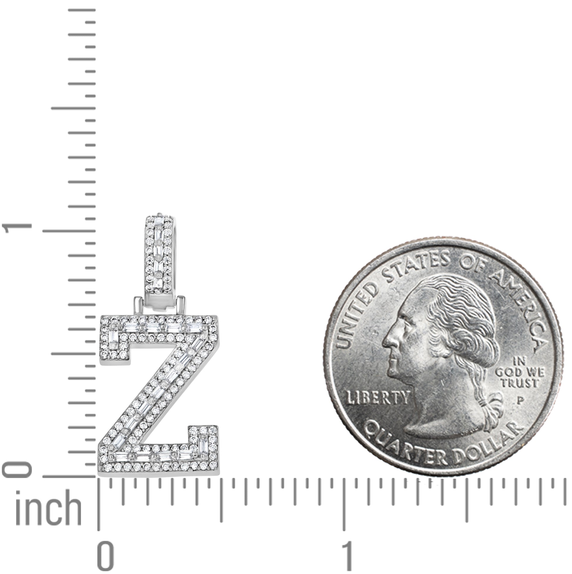 Sterling Silver Unisex Round Baguette Cubic Zirconia Initial Letter A Charm Pendant