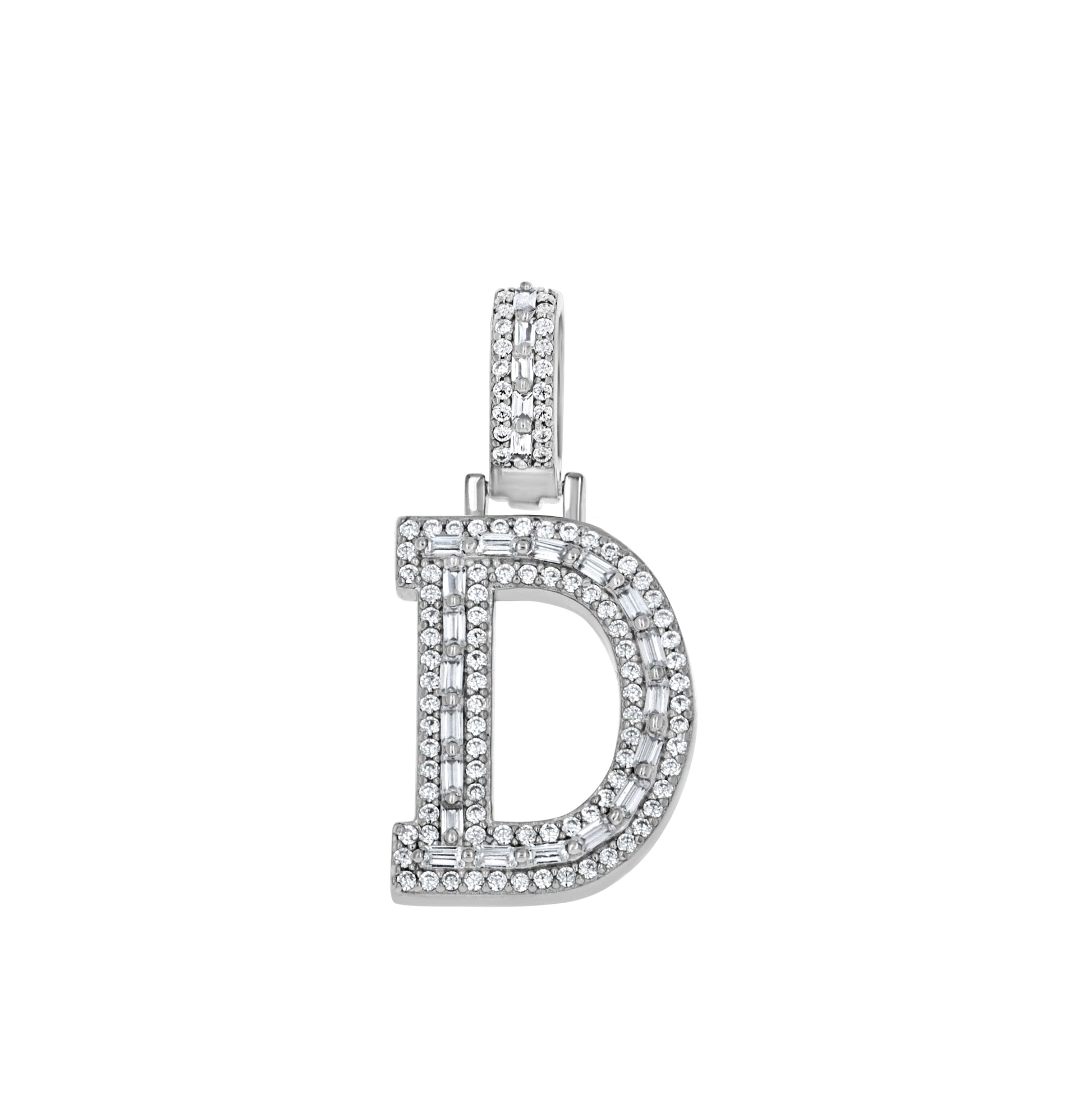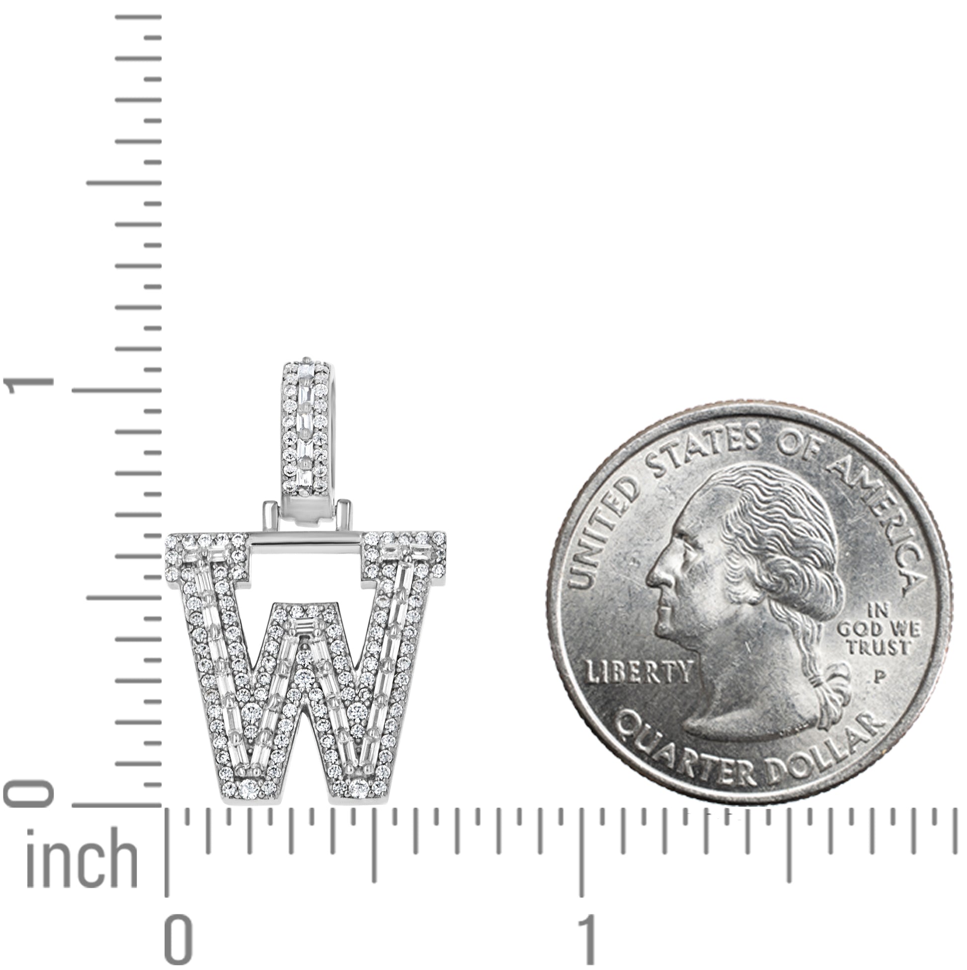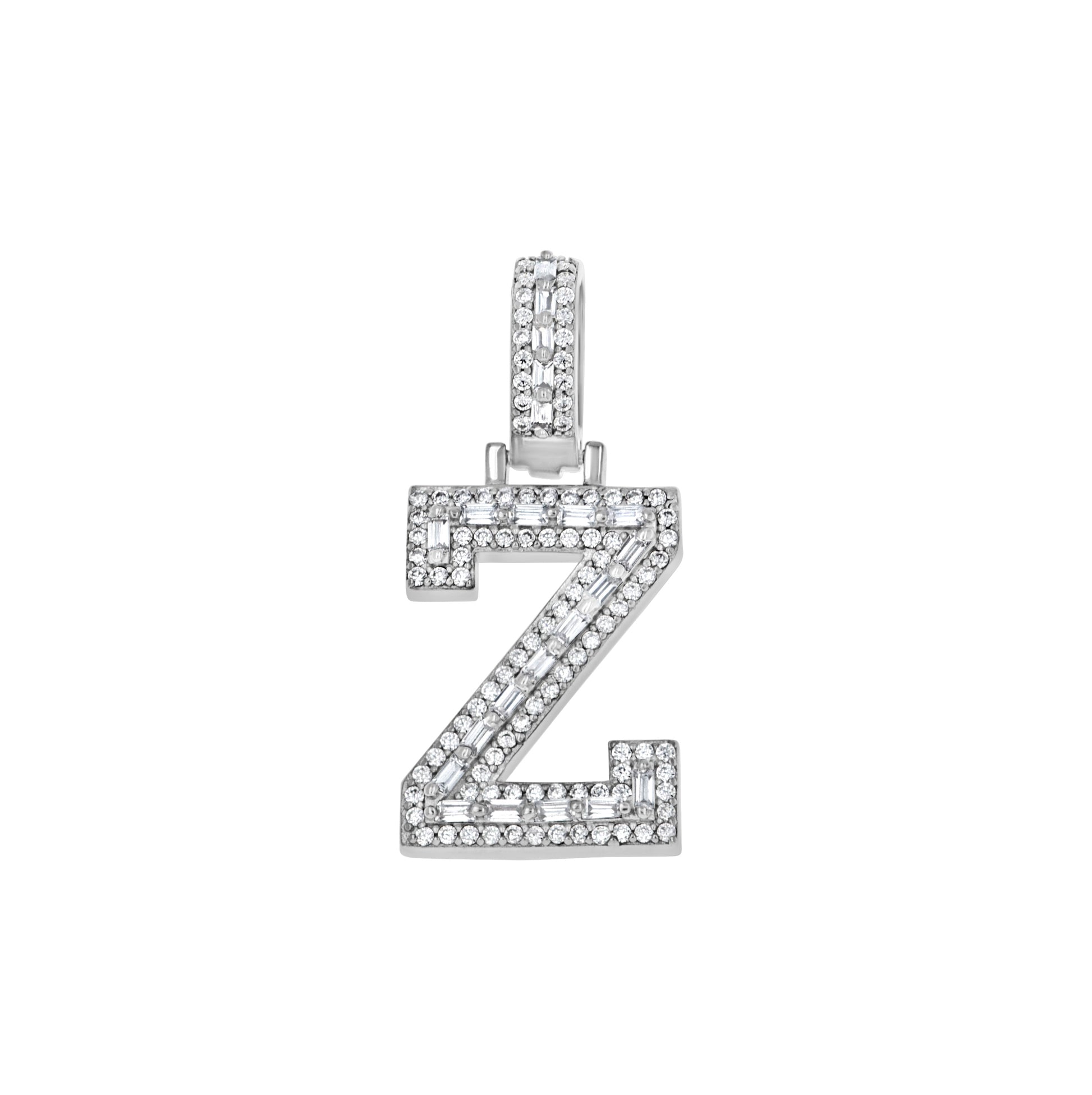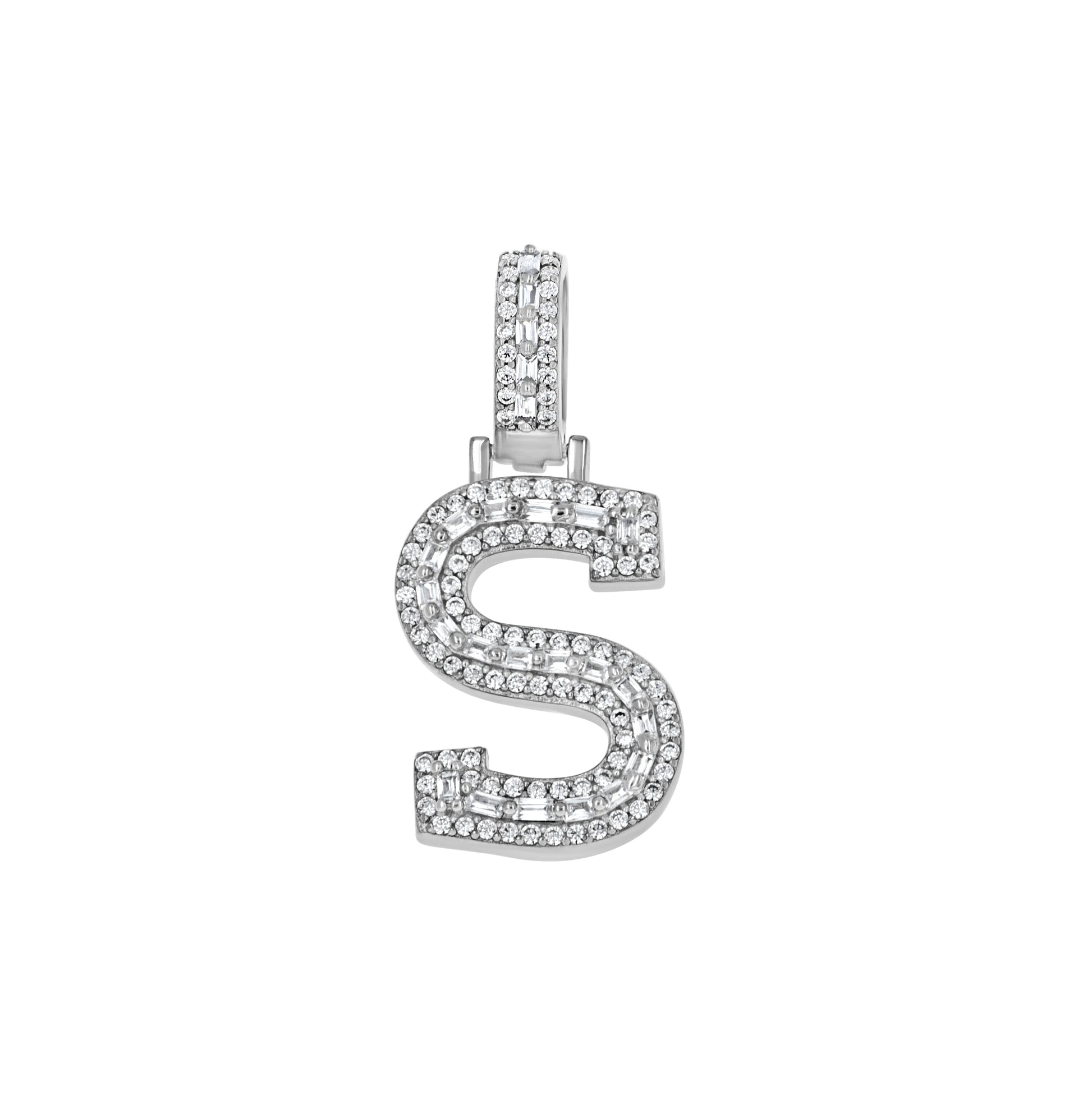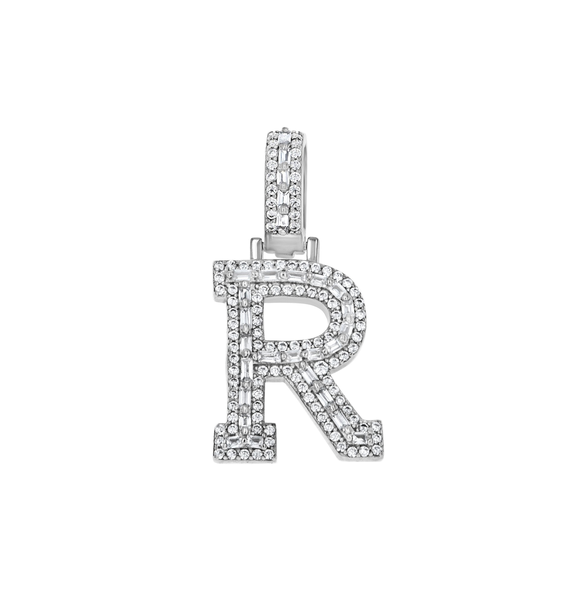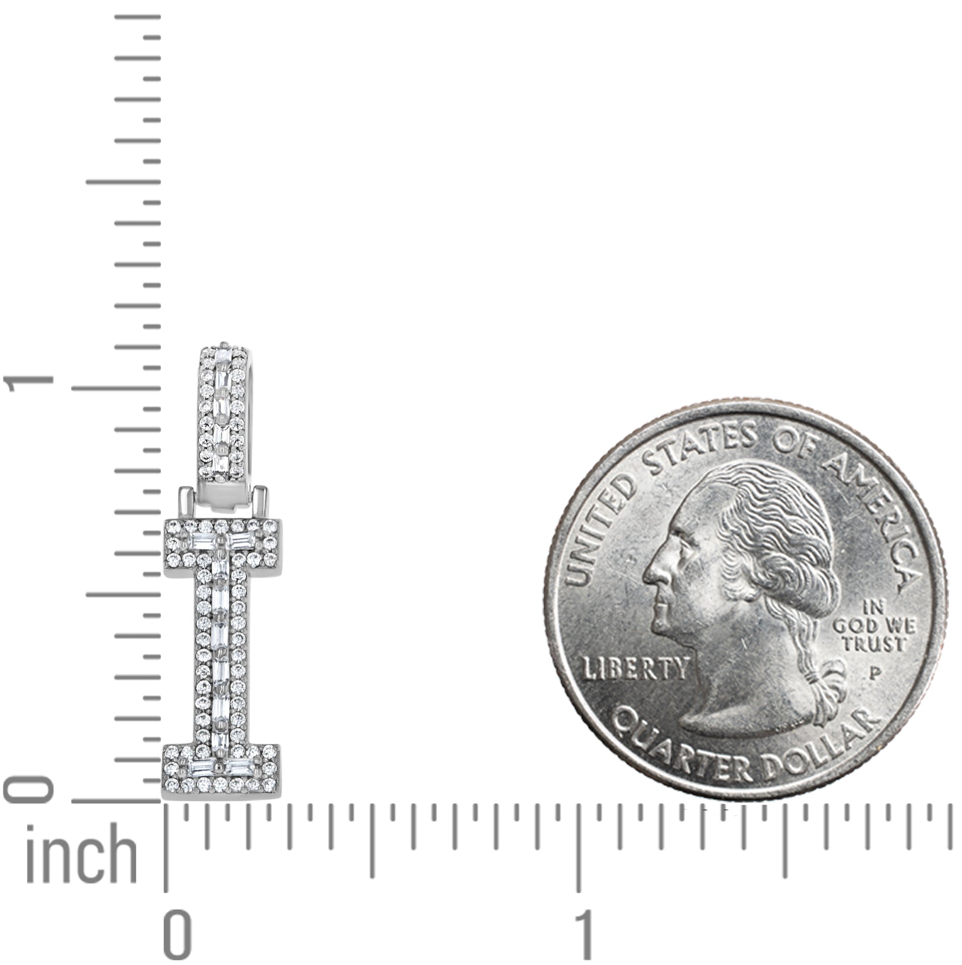 Sterling Silver Unisex Round Baguette Cubic Zirconia Initial Letter A Charm Pendant