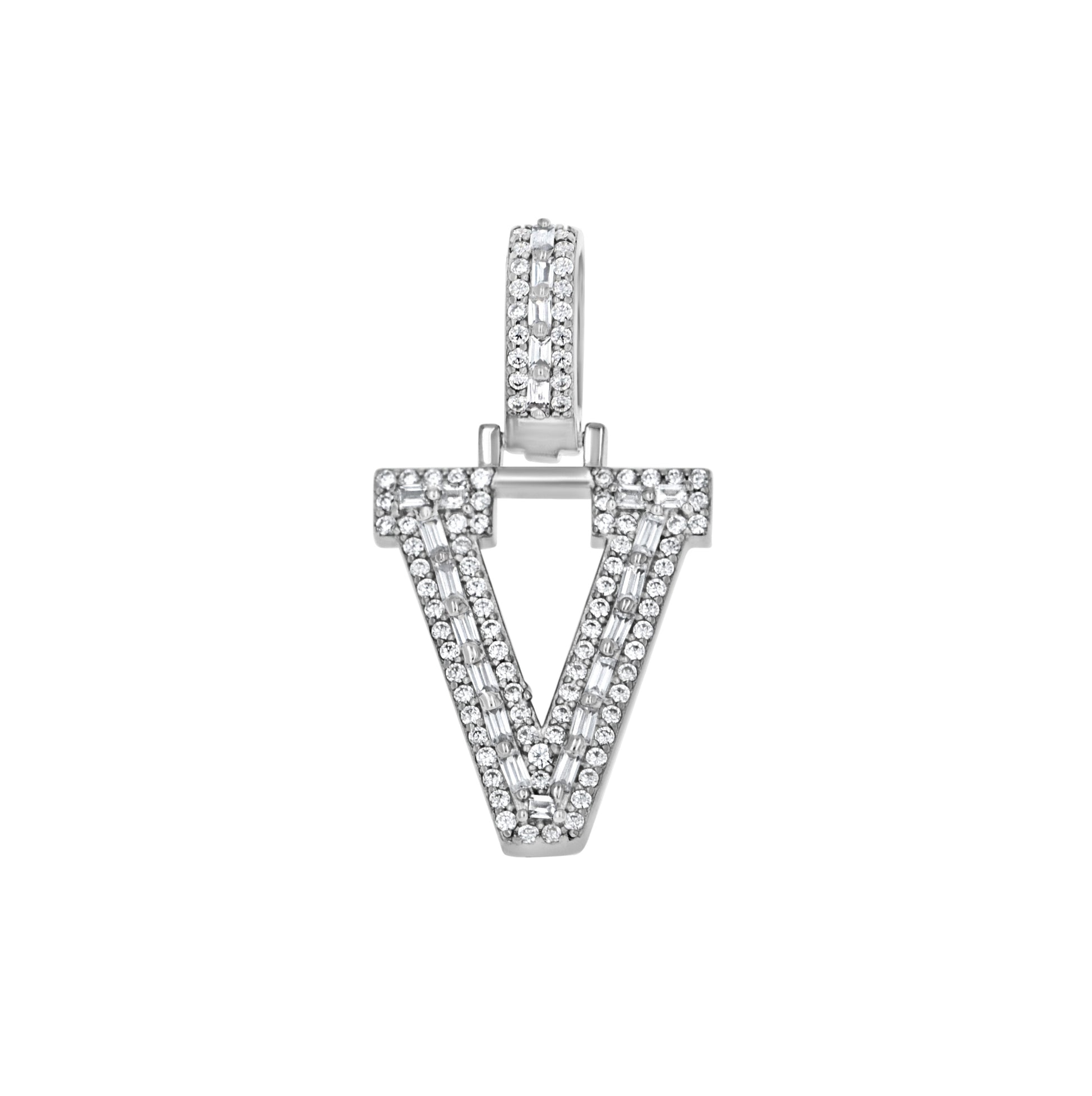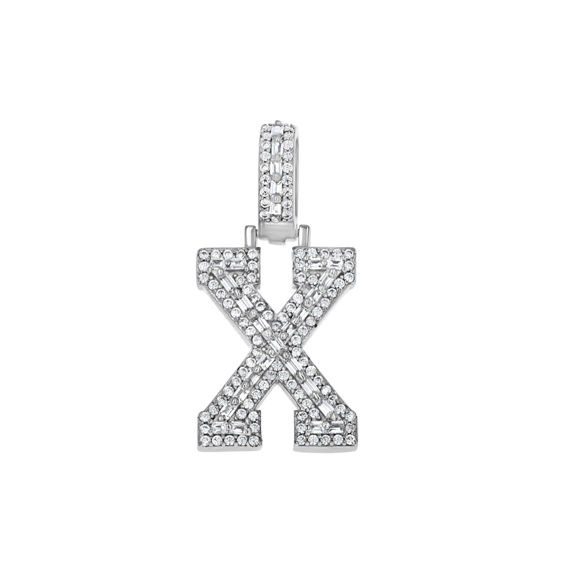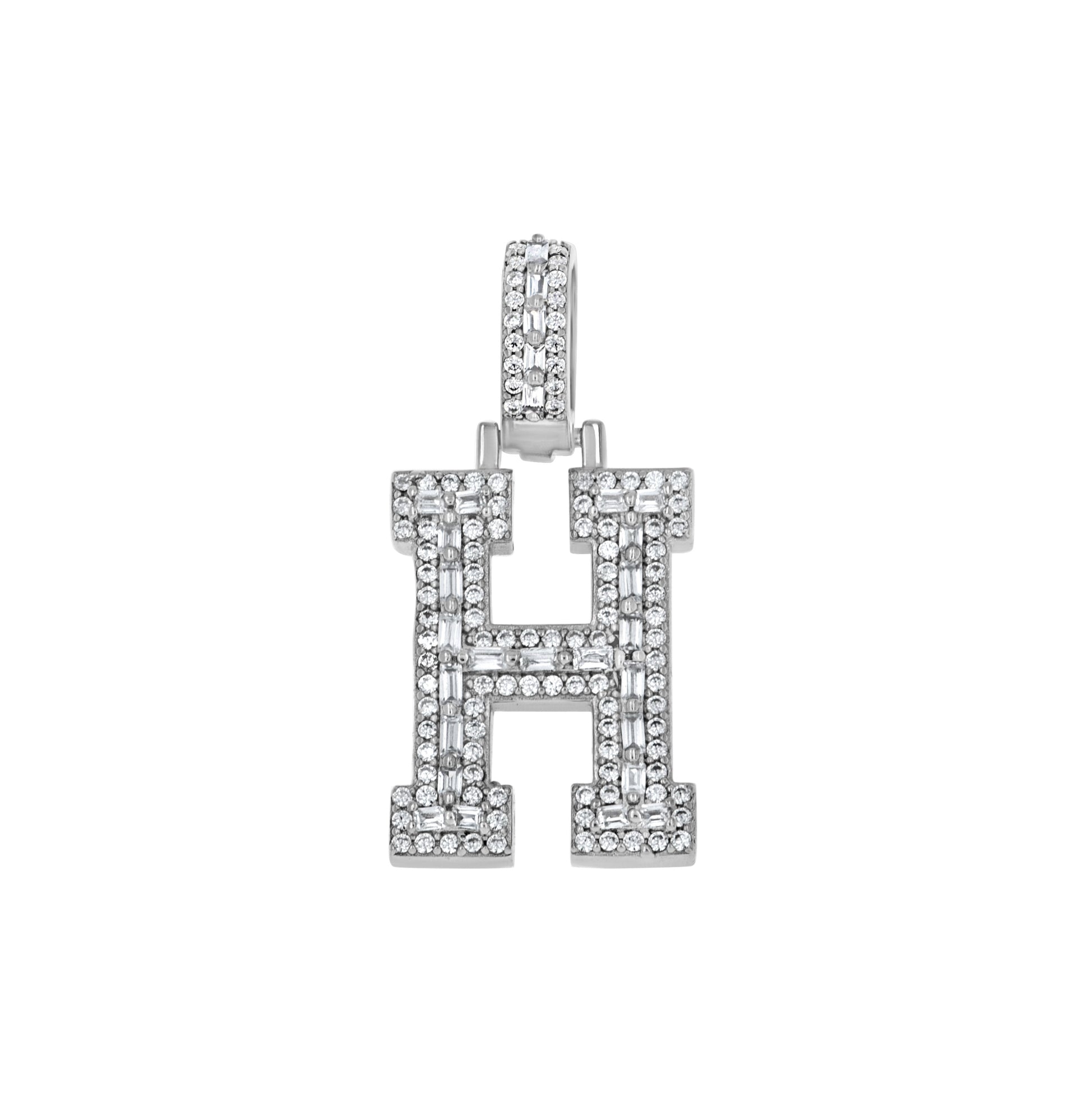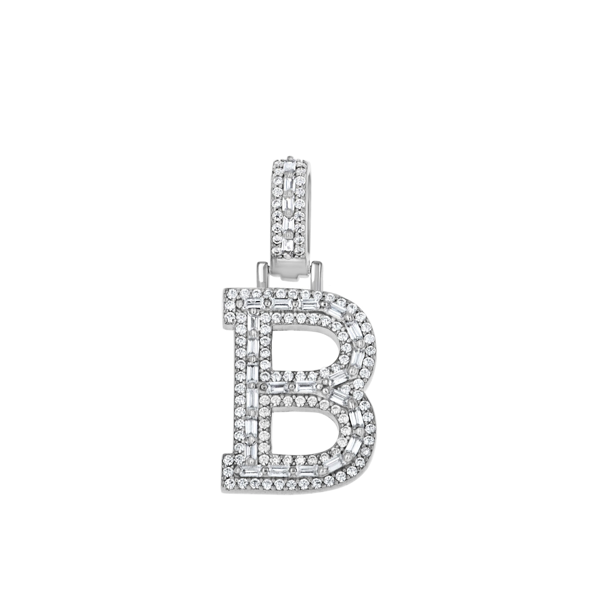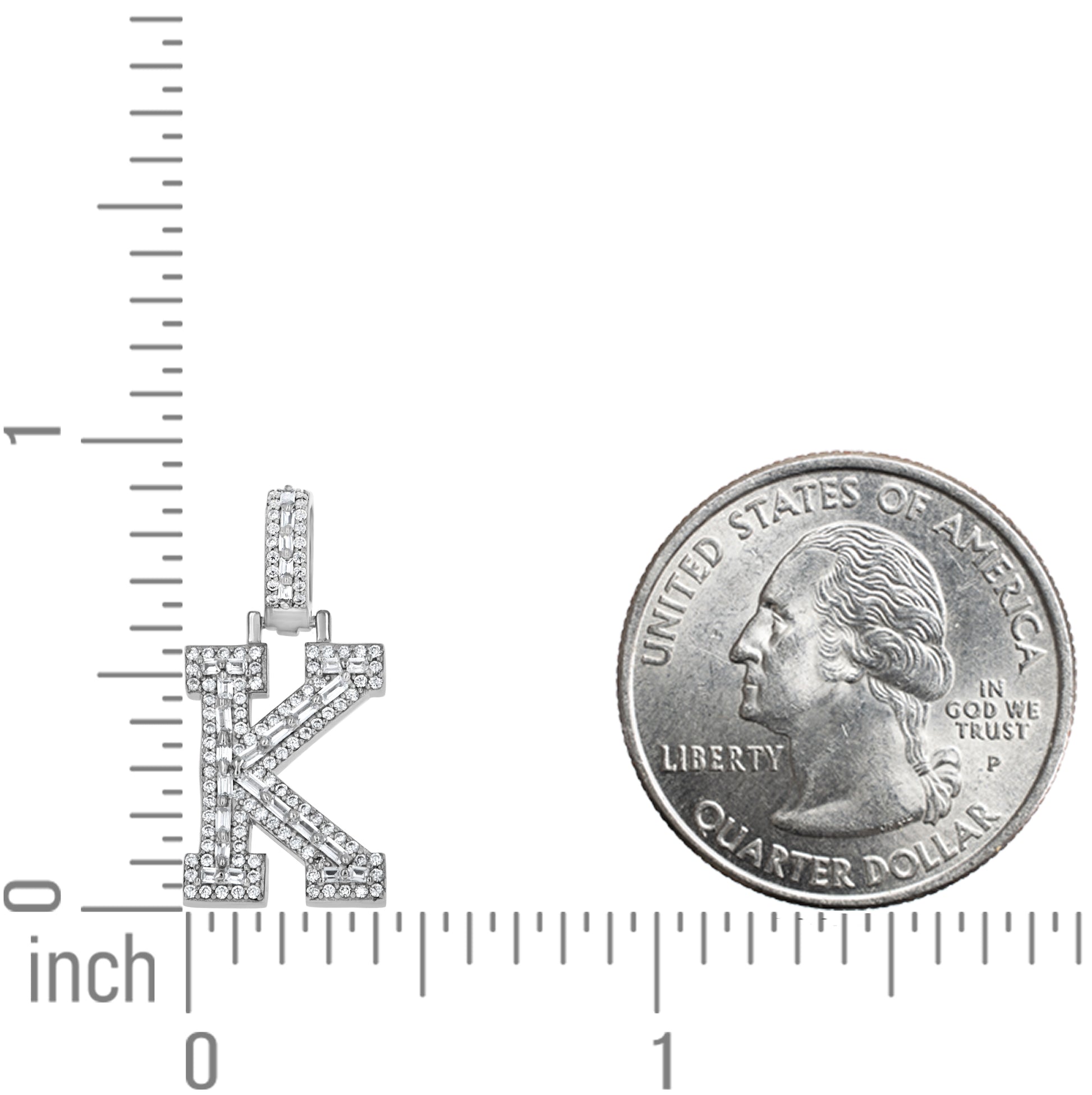 Sterling Silver Unisex Round Baguette Cubic Zirconia Initial Letter A Charm Pendant