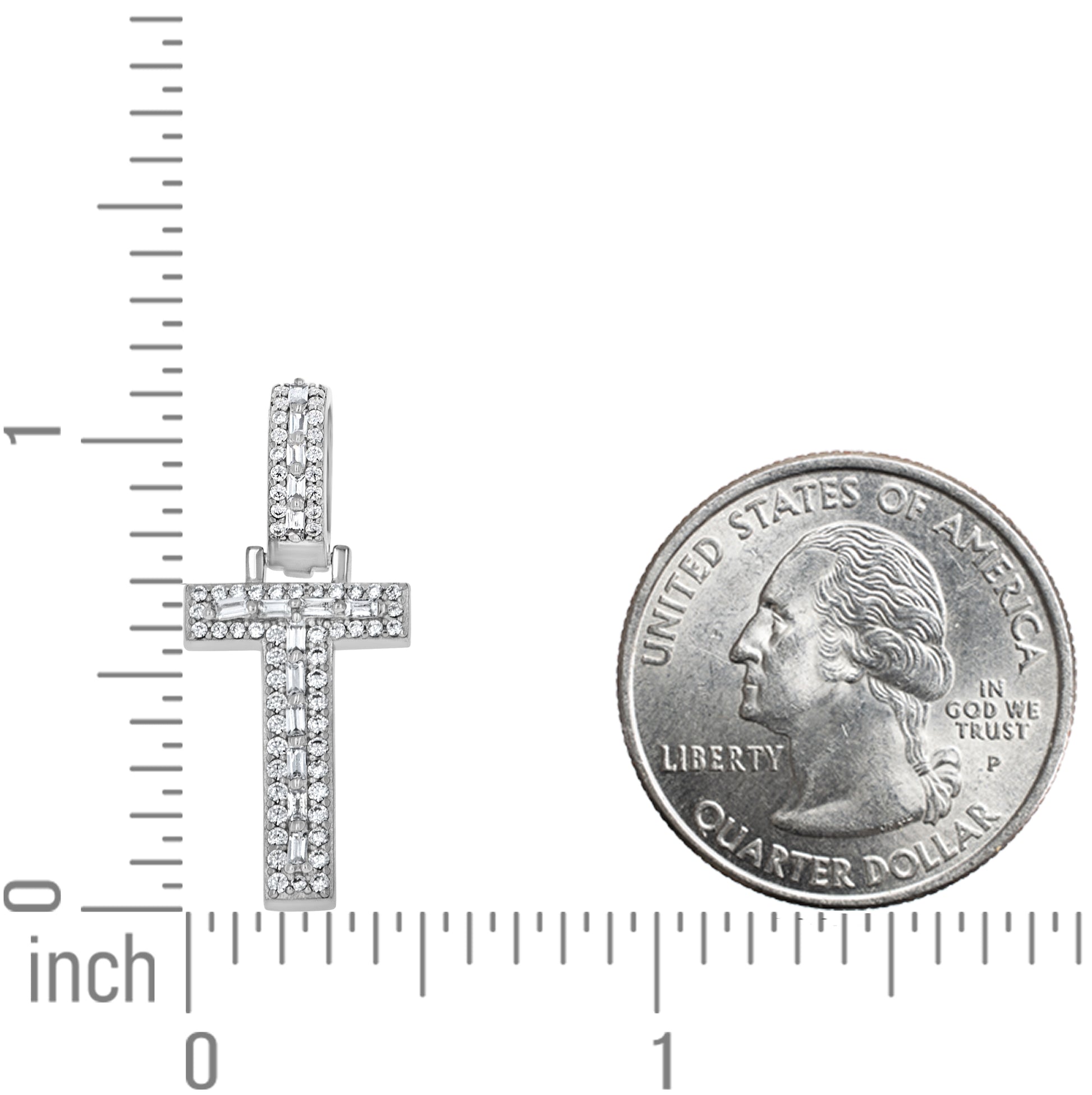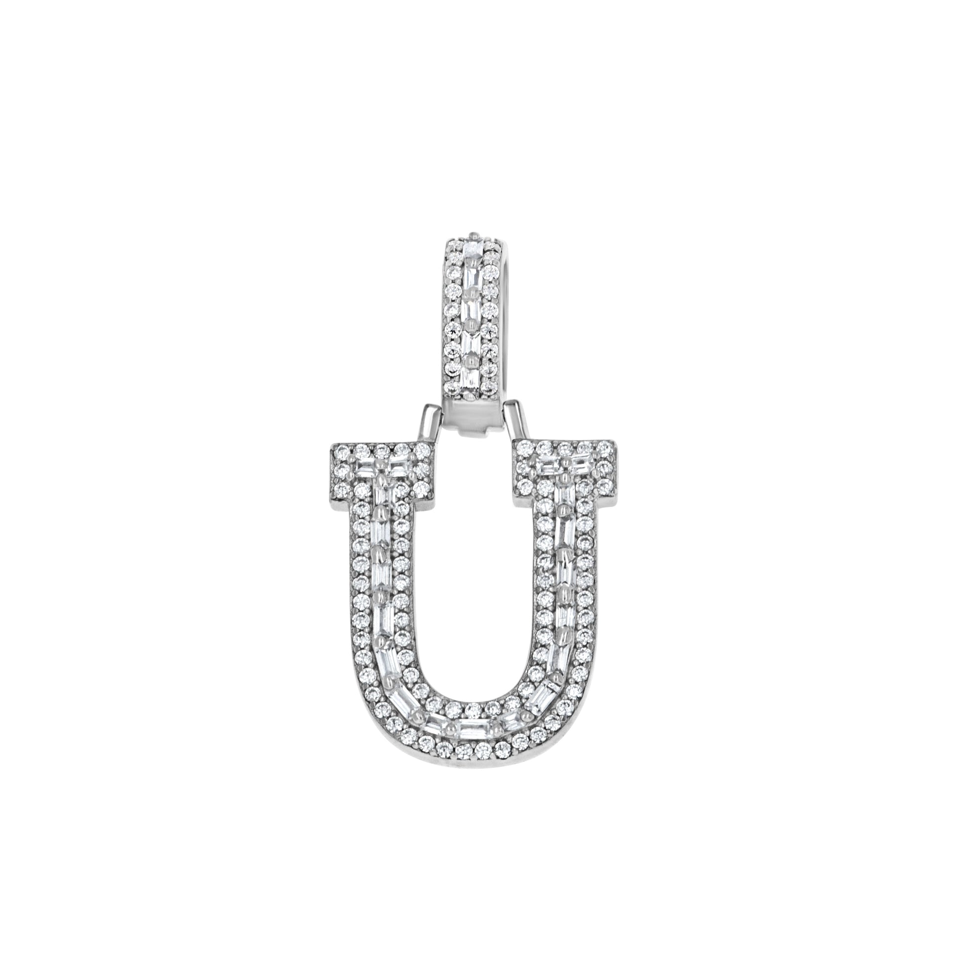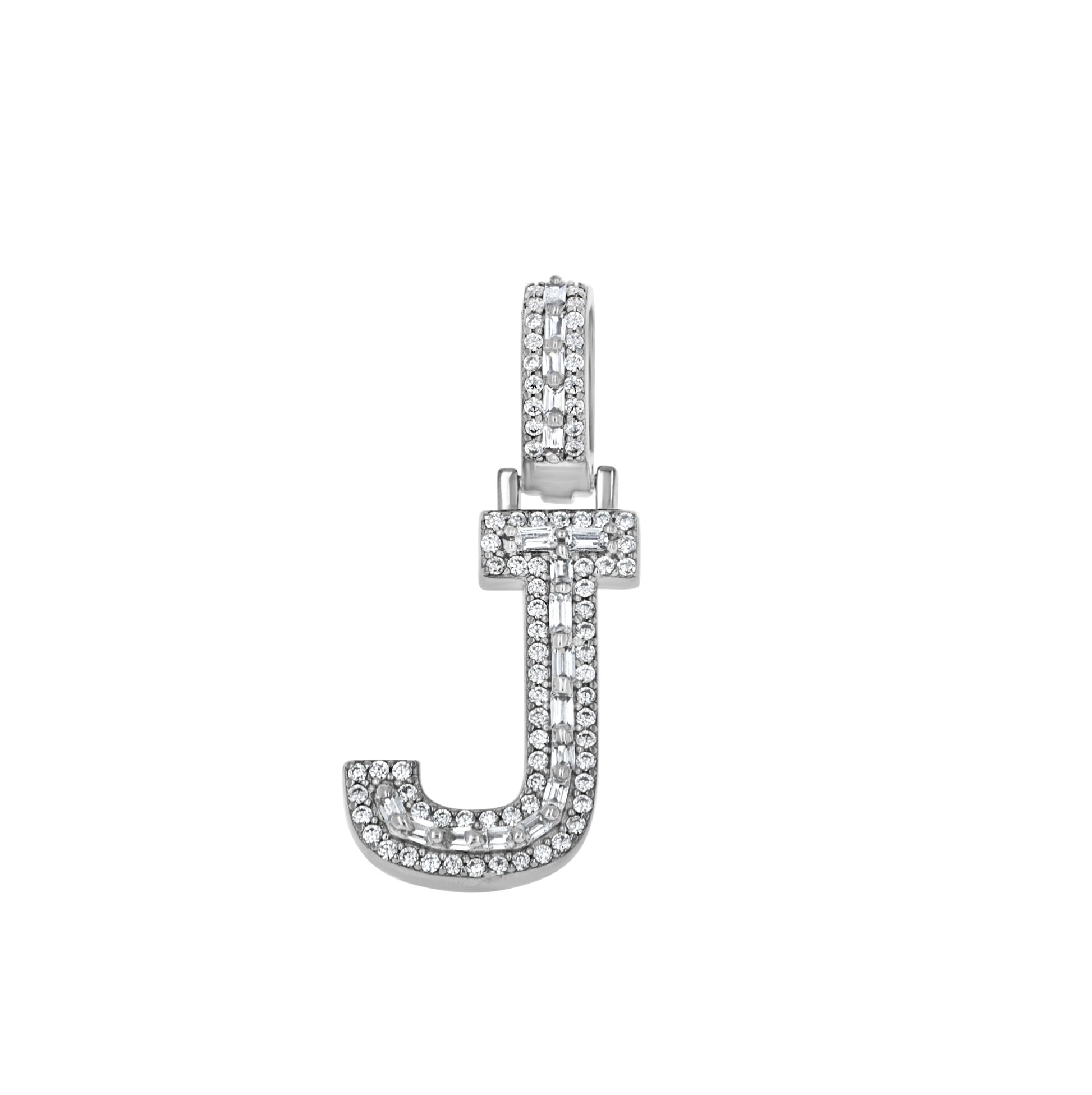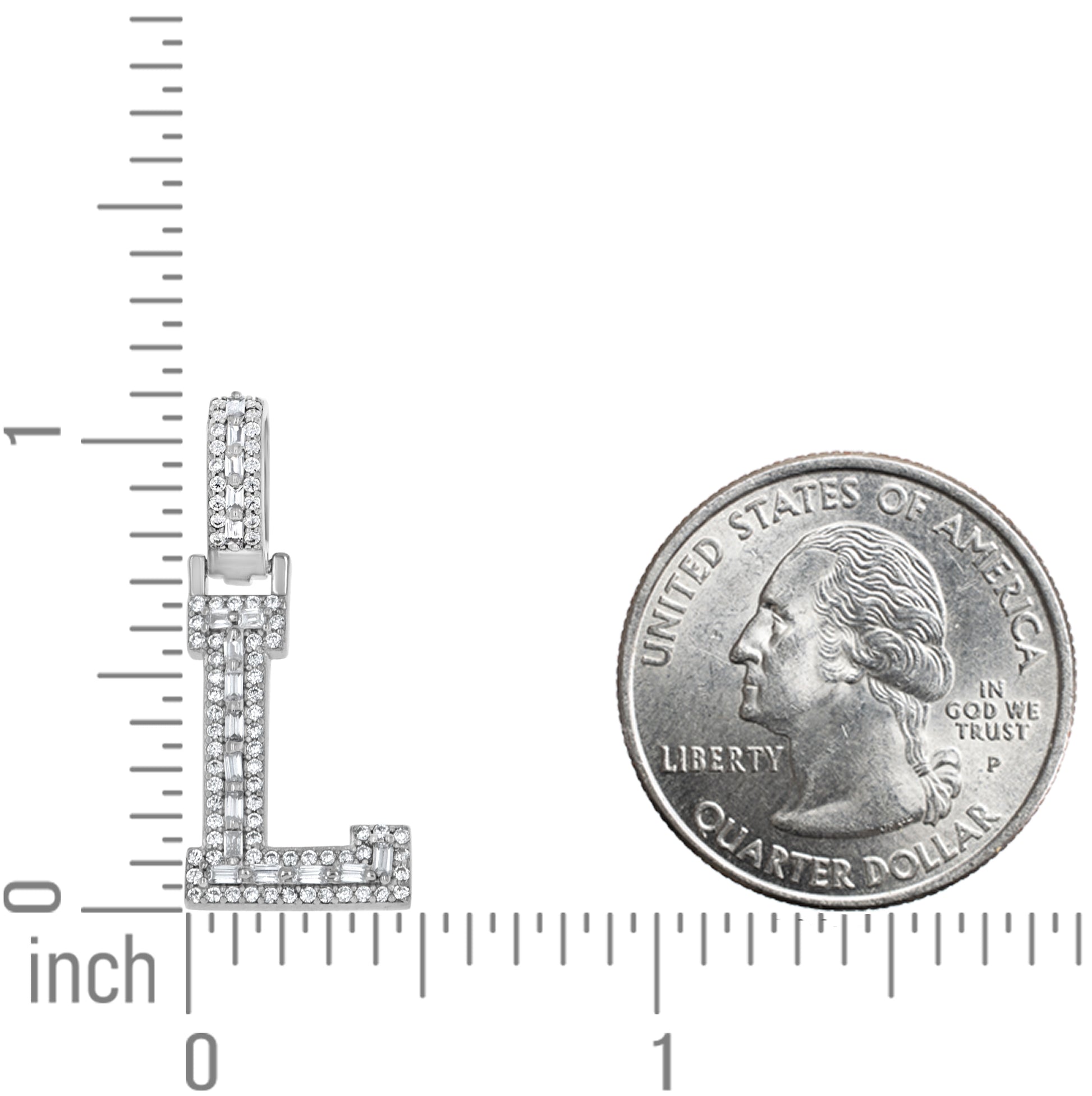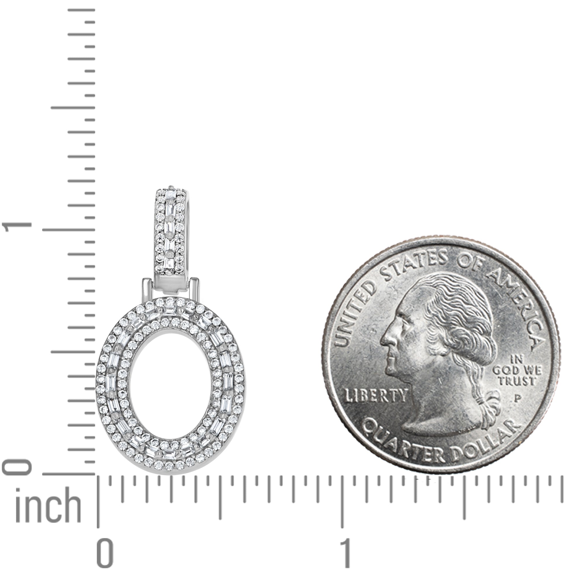 Sterling Silver Unisex Round Baguette Cubic Zirconia Initial Letter A Charm Pendant