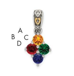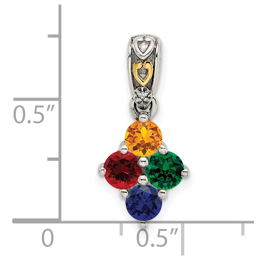 Sterling Silver with 14k Four-stone and Diamond Mother's Pendant on 18in Chain