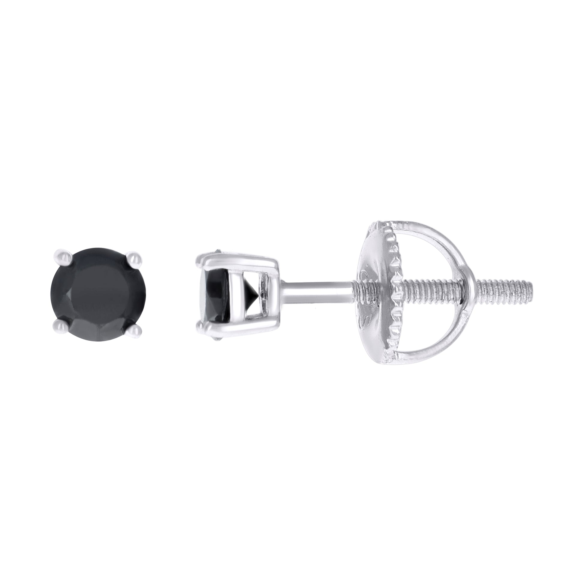 Sterling Silver Womens Black Cubic Zirconia Round Classic Studs Earrings