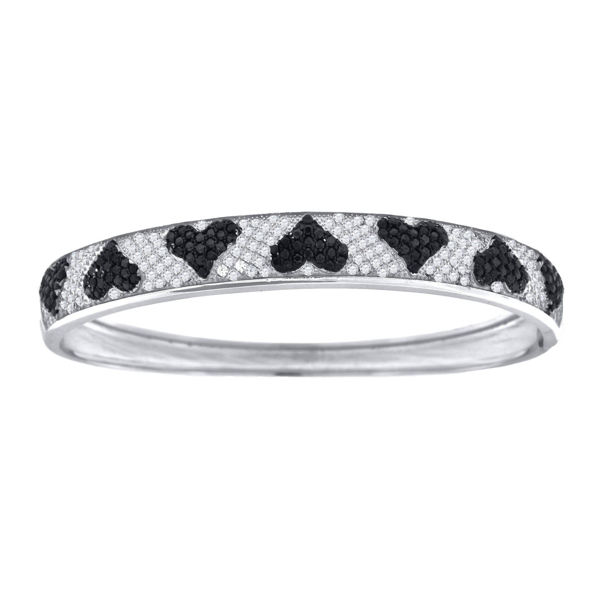 Sterling Silver Womens Black & White Micropave Cubic Zirconia Fashion Heart Bangle