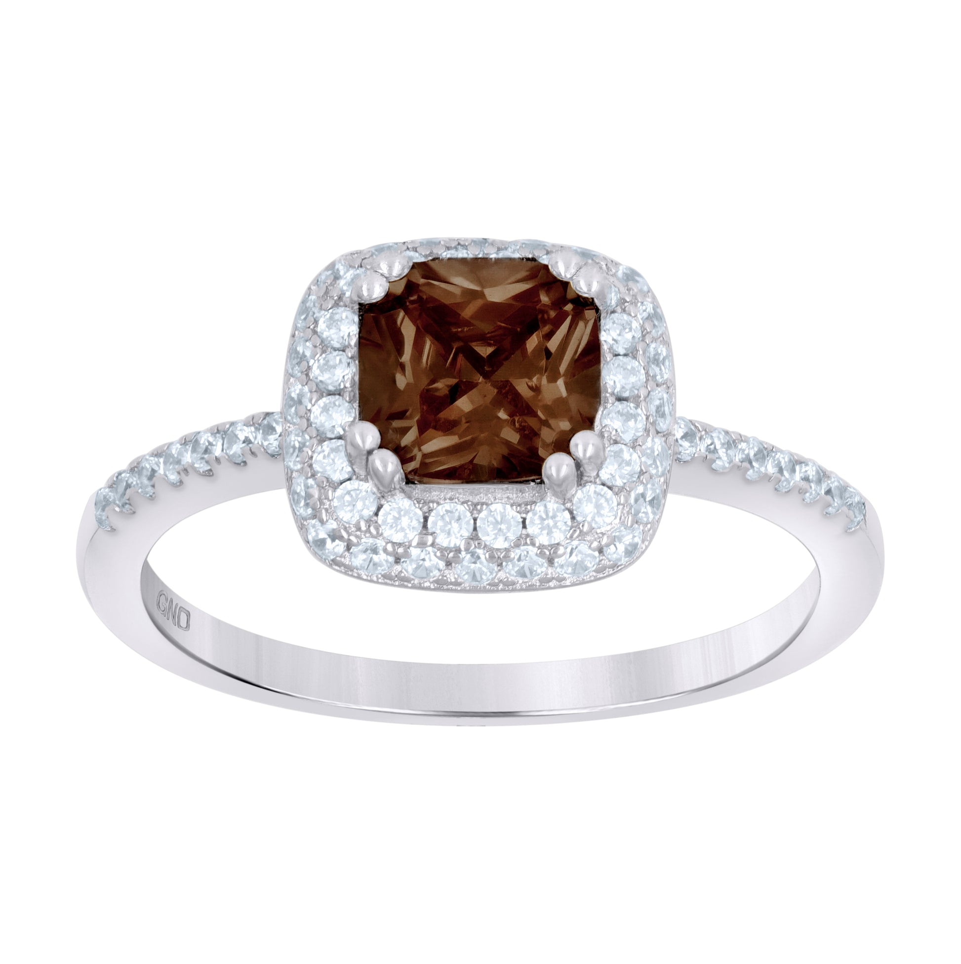 Sterling Silver Womens Brown Cubic Zirconia Halo Bridal Anniversary Wedding Engagement Band Ring