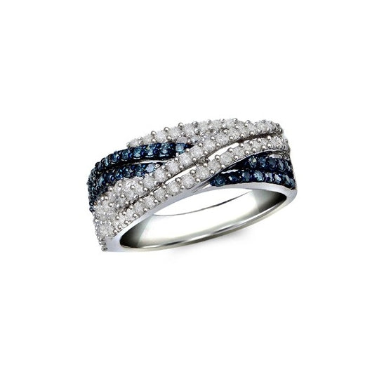 Sterling Silver Womens Color Enhanced Blue Diamond Band 7/8 Cttw