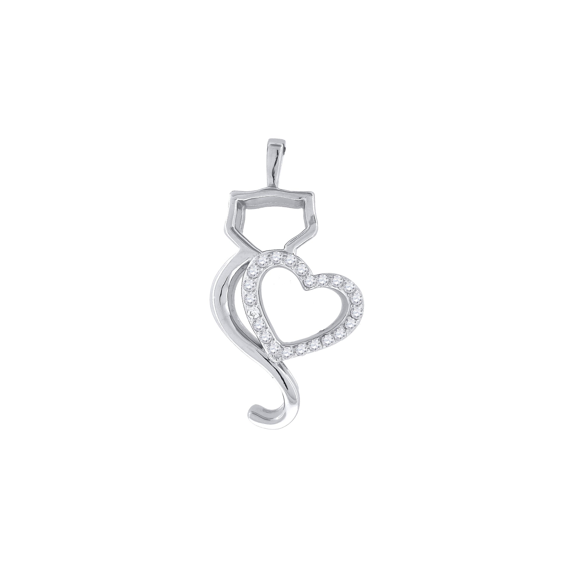 Sterling Silver Womens Cubic Zirconia Animal Cat With Heart Charm Pendant