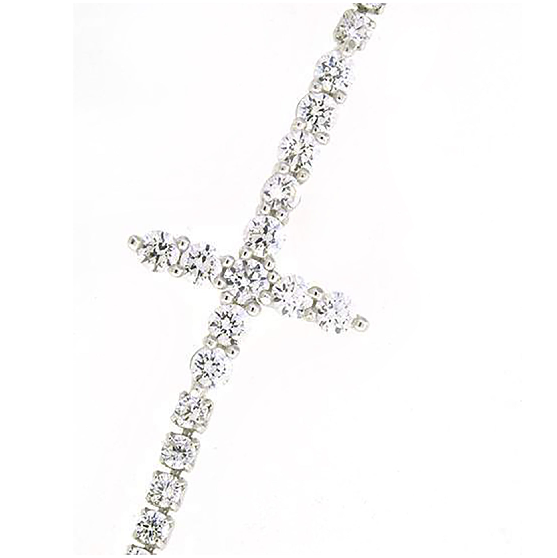 Sterling Silver Womens Cubic Zirconia Box Chain Cross Bracelet