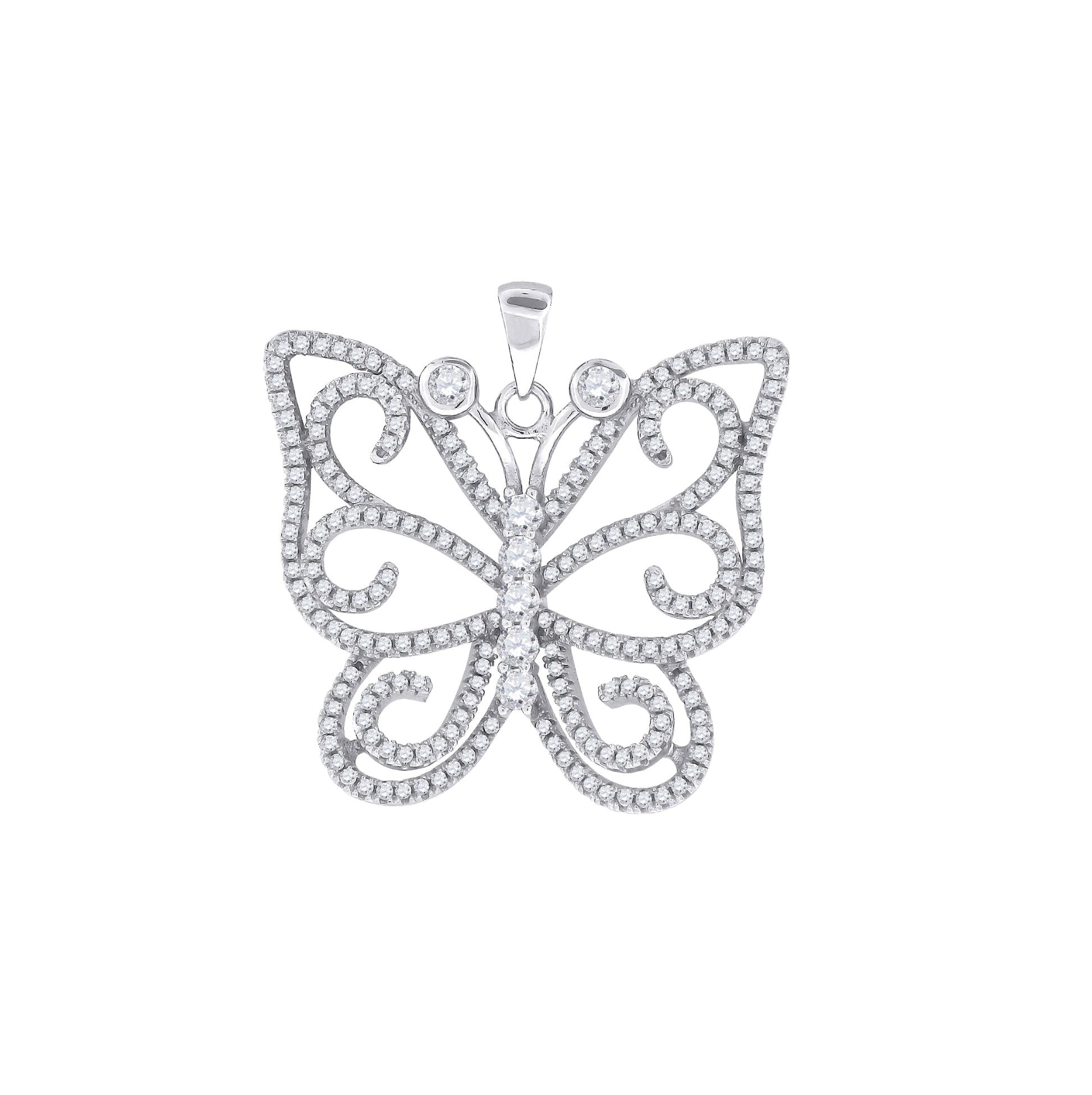 Sterling Silver Womens Cubic Zirconia Butterfly Charm Pendant